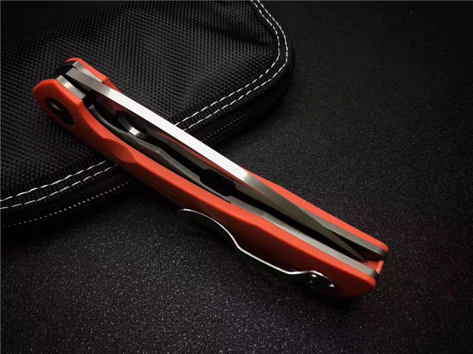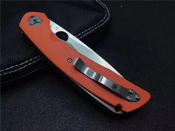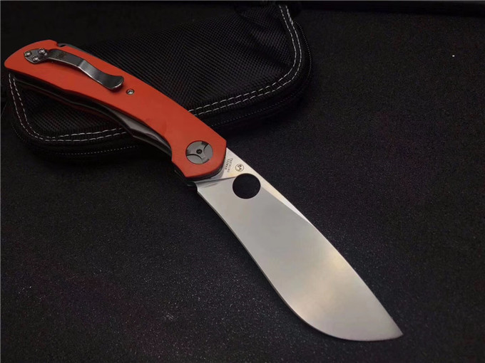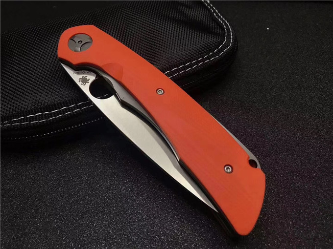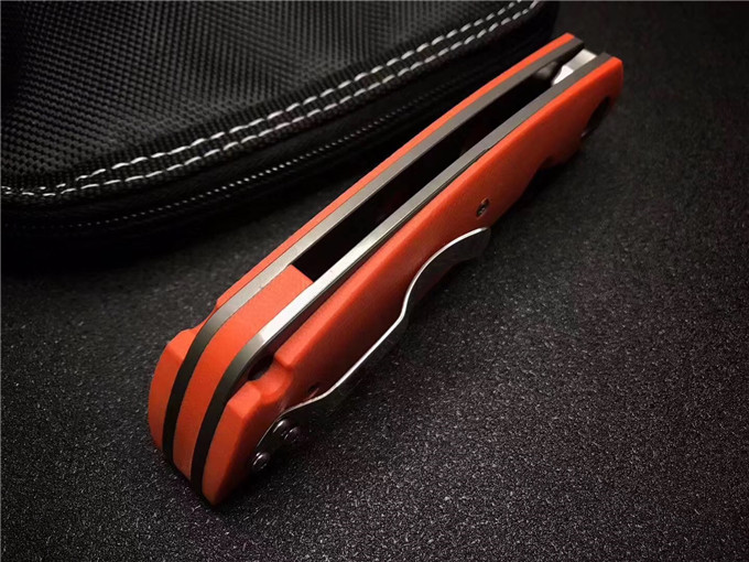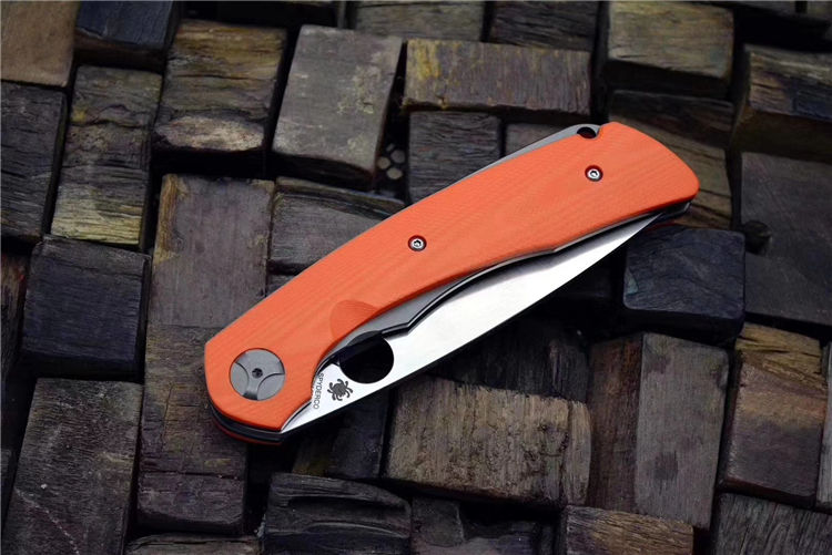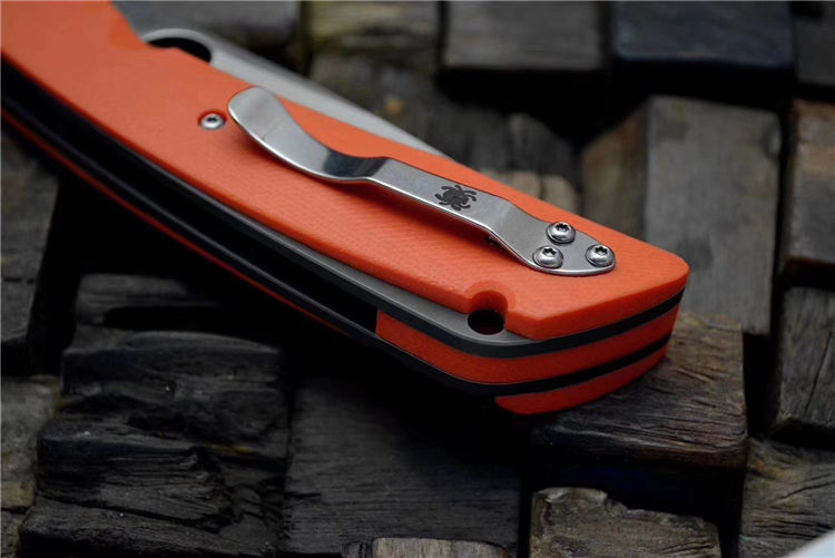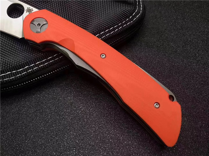 定制版蜘蛛C239折刀 全长:23.5cm 闭合:13cm 刃长:9.5cm 刃厚:4mm 净重:210克 刃材:D2钢钢,热处理 硬度:约60HRC 表面:砂光处理 柄材:钢片+G10 配钢珠滚珠轴承,顺滑度非常好
