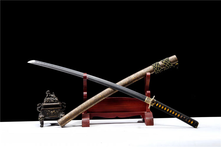 曙光武士刀 专业测试、请勿模仿 工艺:龙泉古法传统手工艺 装具:铜装 刃材:花纹钢烧刃 柄材:实木鱼皮柄 鞘材:实木皮鞘 赠品:高端锦盒、养护油、布