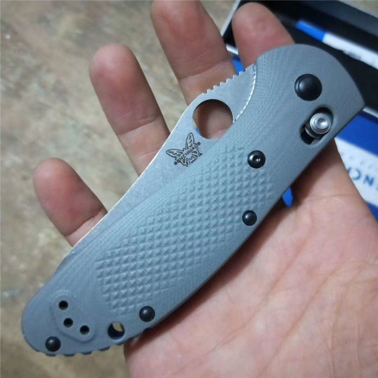 巨力蝴蝶550-1折刀 刃长: 91mm 闭合长度: 121mm 刃材: 石洗GB-D2 硬度: 60-61 表面: 砂光 刃厚: 3mm 柄长: 121mm 柄材: 6061+G10+420J
