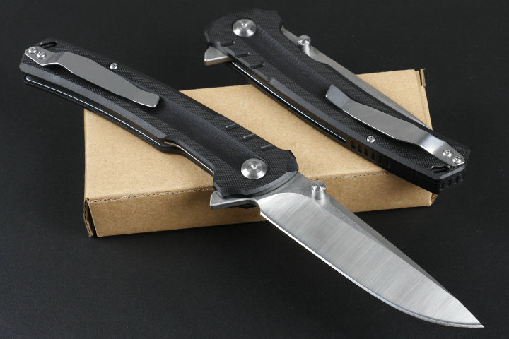 血狼快开折刀 全长:24.0cm 刃长:10.5cm 柄长:14.5cm 刃宽:2.7cm 刃厚:4.1mm 刃材:9CR18MOV(刀刃数控磨工处理) 刀重:185G 总重:170g(含包装物) 硬度:58-60HRC 表面:刀刃真空处理,石洗伴丝光。 柄材:正反面G10手柄+优质进口碳纤。 刀夹:背夹 锁型:线锁。 螺丝:所有螺丝420不锈钢硬度HRC45,全CNC精雕加工 结构:线锁结构、锁刀接触镶嵌合金粒、陶瓷定位珠、内置平面轴承垫片 其他:黄色盒装