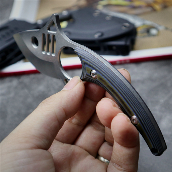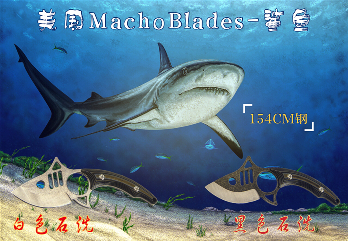 美国MachoBlades鲨鱼EDC小直刀 全长:14.8CM 刃长:6CM 刃厚:0.4CM 钢材:154CM钢 硬度:59-60HRC(真空油冷热处理) 表面:沧桑石洗或石洗 刀柄:三色G10 刀套:进口K鞘 重量:238g(含包装) 包装:黑色礼品盒