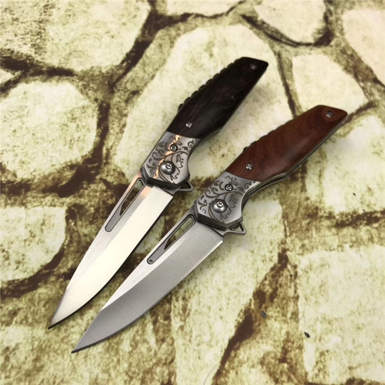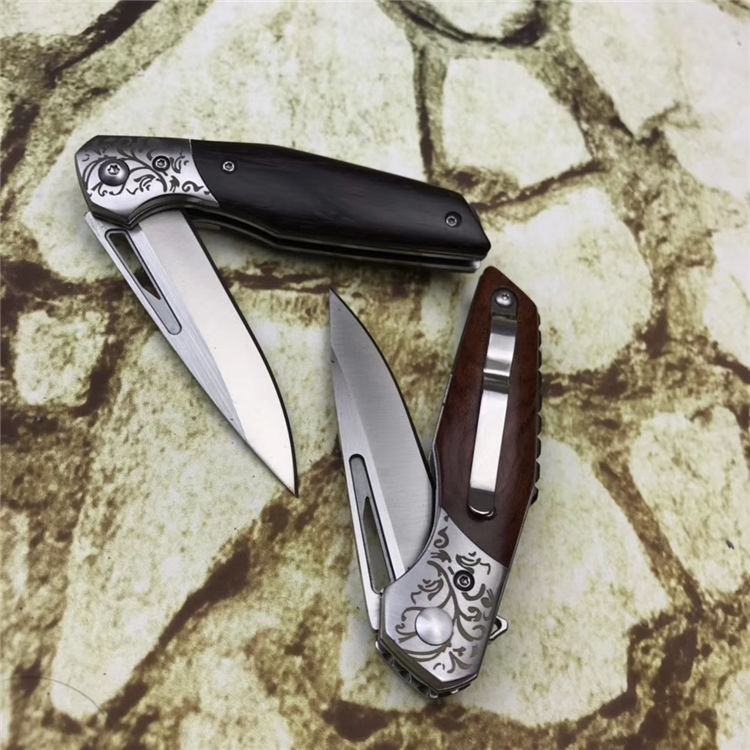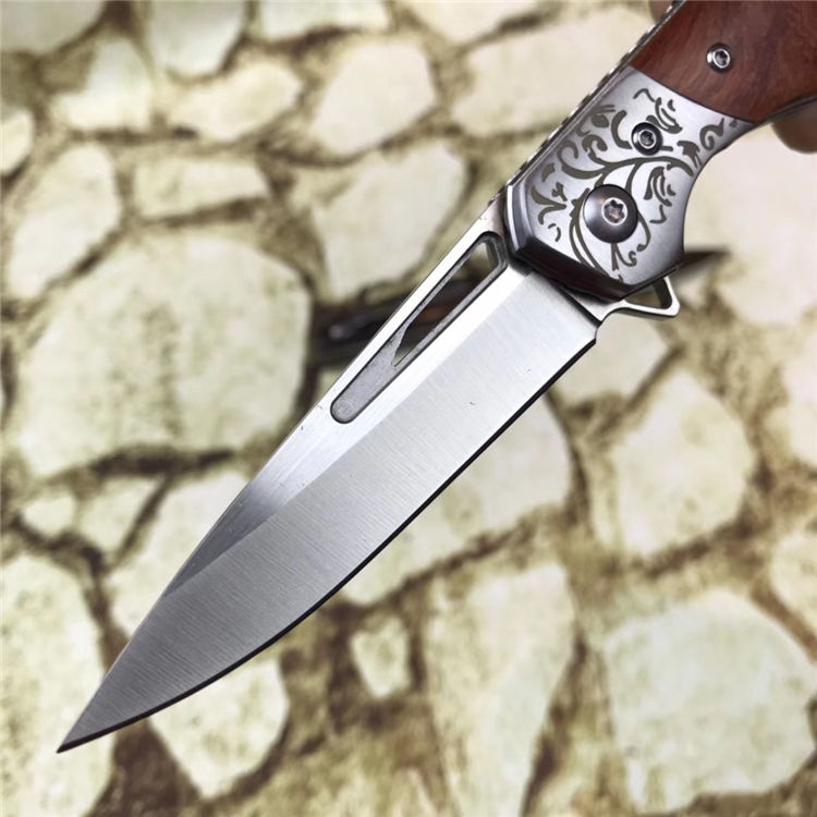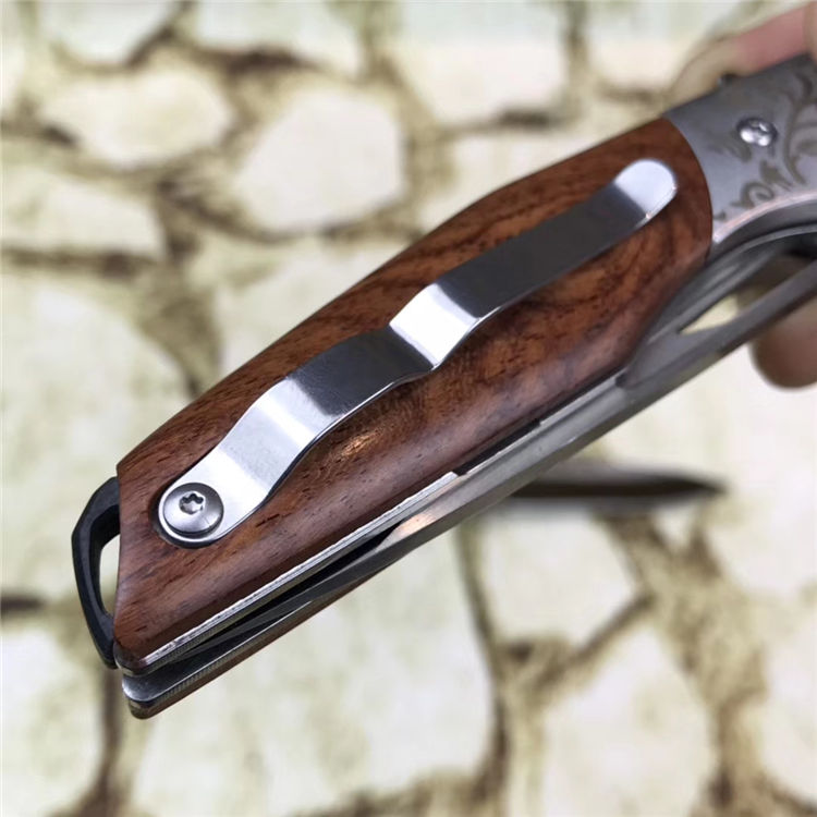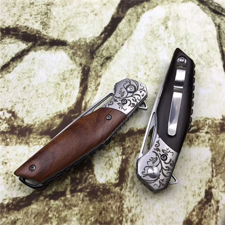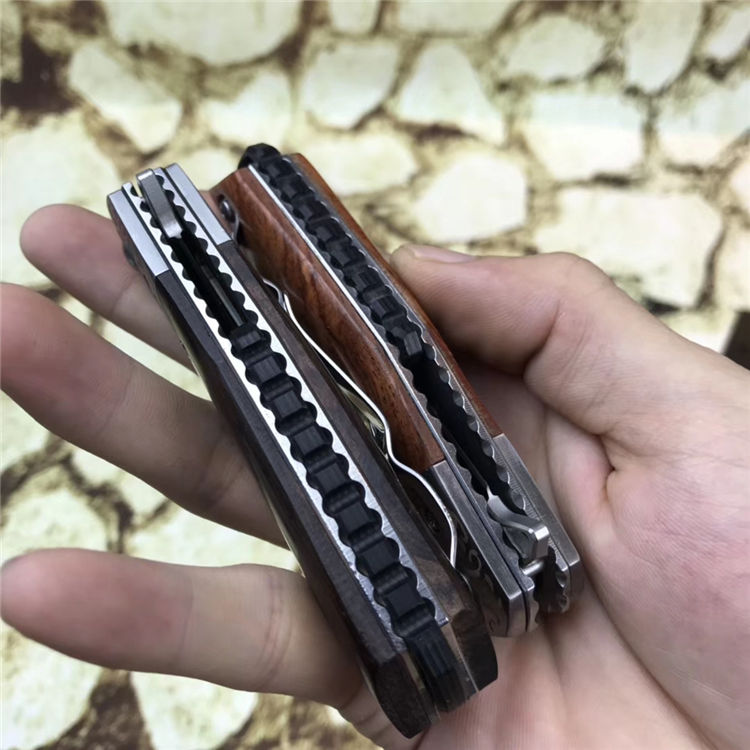 凯龙快开折刀 全长:17.5cm 刃长:7.5cm 柄长:10cm 刃厚:2.0mm 刃材:D2高速钢 硬度:57HRC 刀柄:黑檀与酸枝木 表面:砂光 锁定方式:侧锁 重量:170克