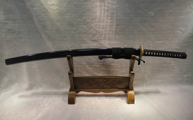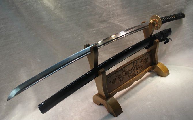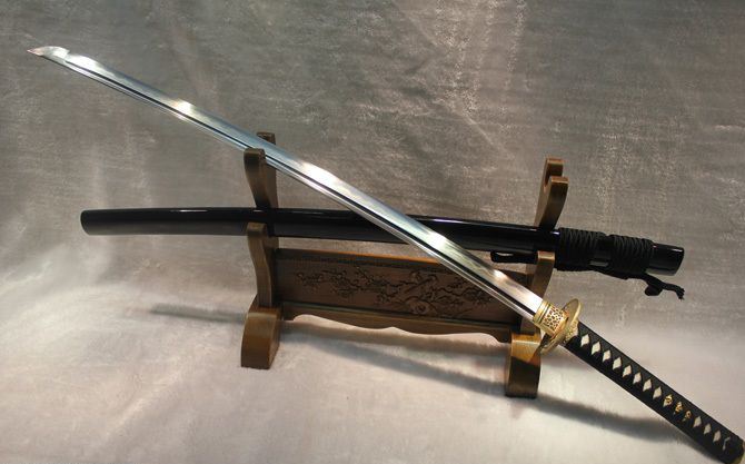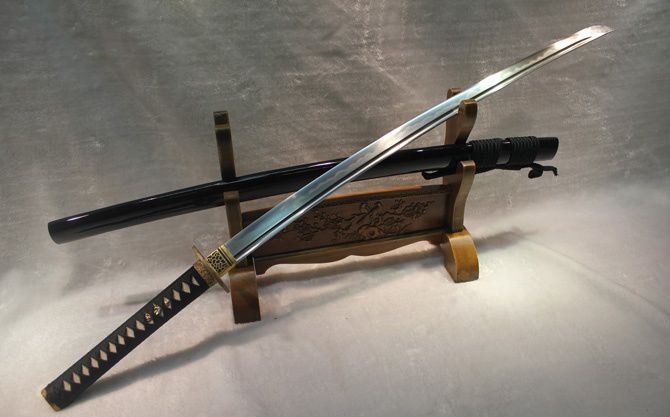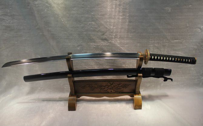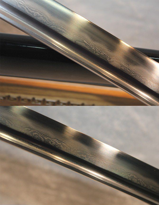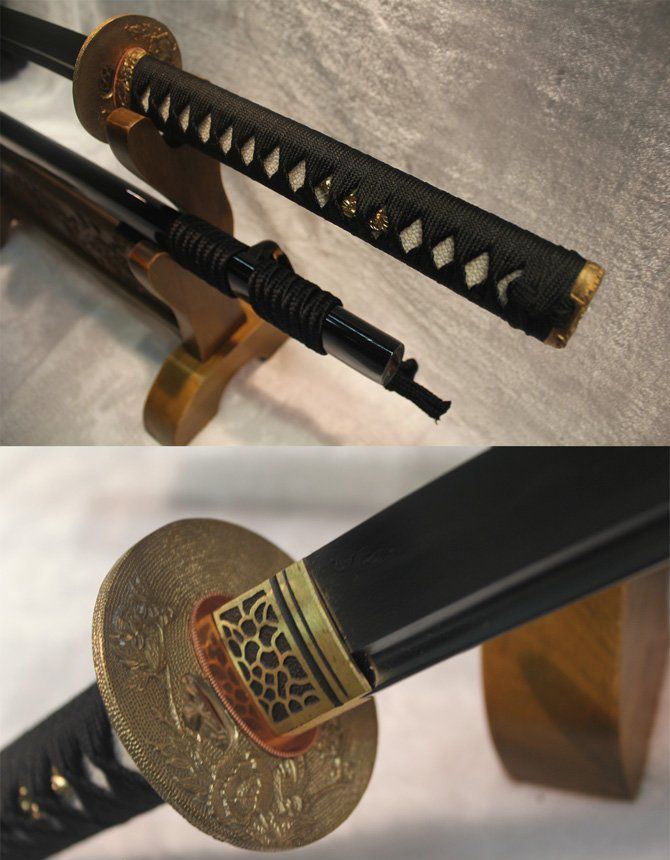 伊藤烧刃花纹钢日本刀 全长:102cm 刃长:72cm 柄长:27cm 刃宽:3.2cm 刃厚:0.75cm 刀重:1300 g 总重:2500g 刃材:手工折叠花纹钢烧刃 鞘材:青皮木黑烤漆 装具配件:手工精品全铜刻花 柄材:硬木精细扎绳加工工艺 工艺:精炼地基钢,包钢覆土烧刃,传统古法13道手工研磨。 硬度区间:刃口60HRC;刀身:58HRC 性能:削纸断竹砍铁丝 备注:手工产品存在误差,规格仅供参考,请以实物为准