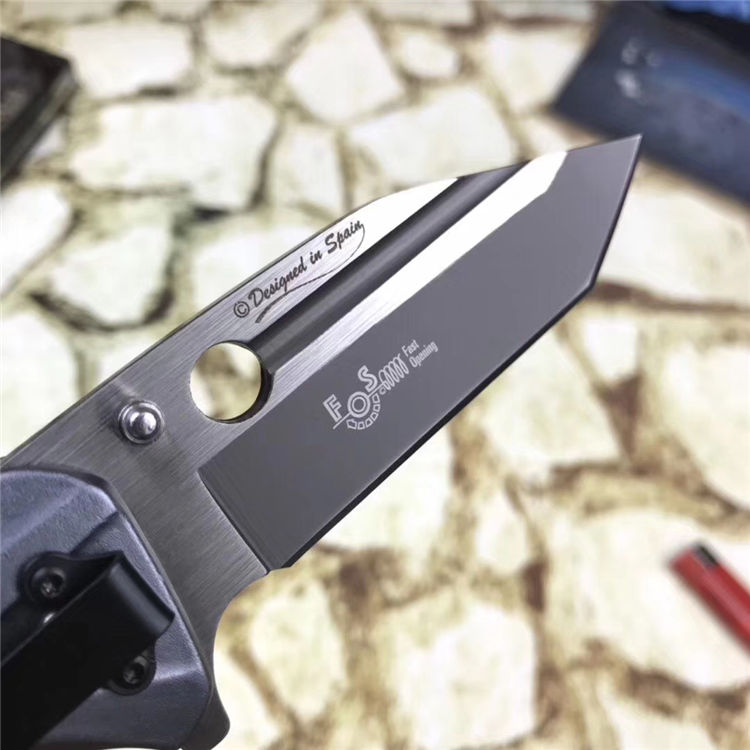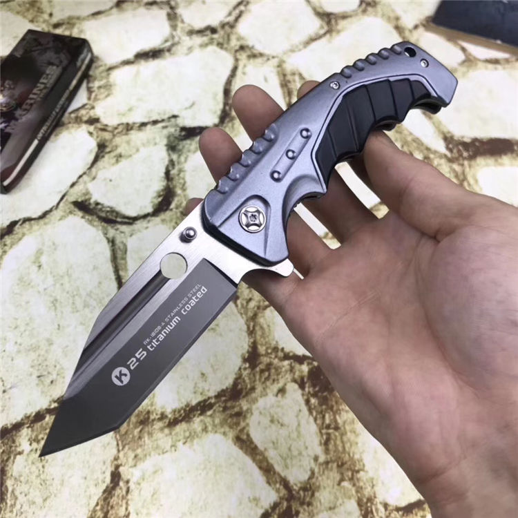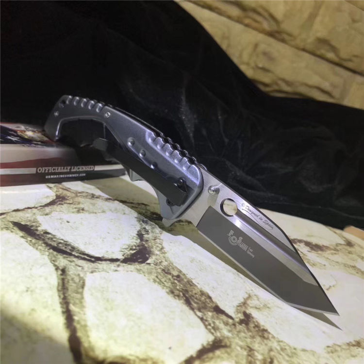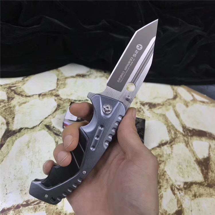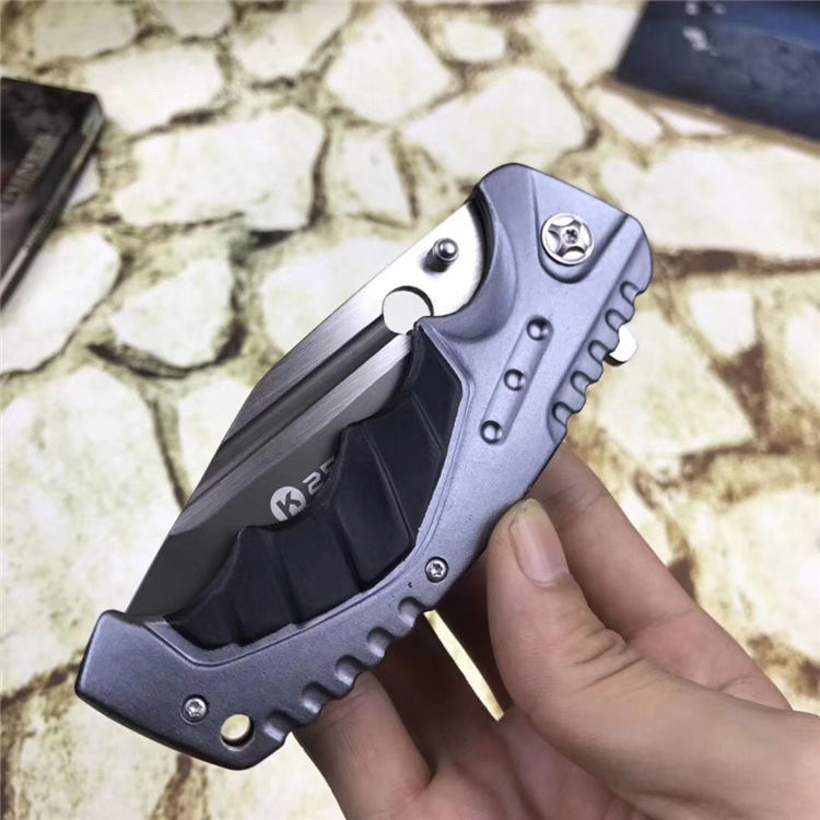 铁甲勇士折刀 全长:21cm 刃长:10cm 刃宽:3cm 闭合:12cm 刃厚:0.27cm 钢材:440C 硬度:56HRC 净重:180g 柄材:铝 锁型:弹簧辅助快开 包装:纸盒