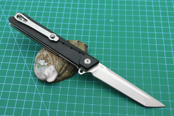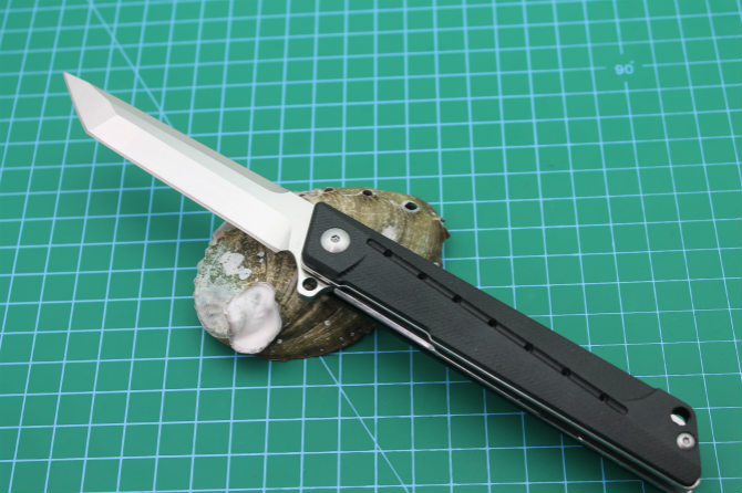 必杀武士快开折刀 全长:220mm 刃长:90mm 封闭长度:125mm 刃厚:3mm 表面处理:缎面打磨 重量:188克含包装 材质:D2 柄材:G10 硬度:59-60HRC