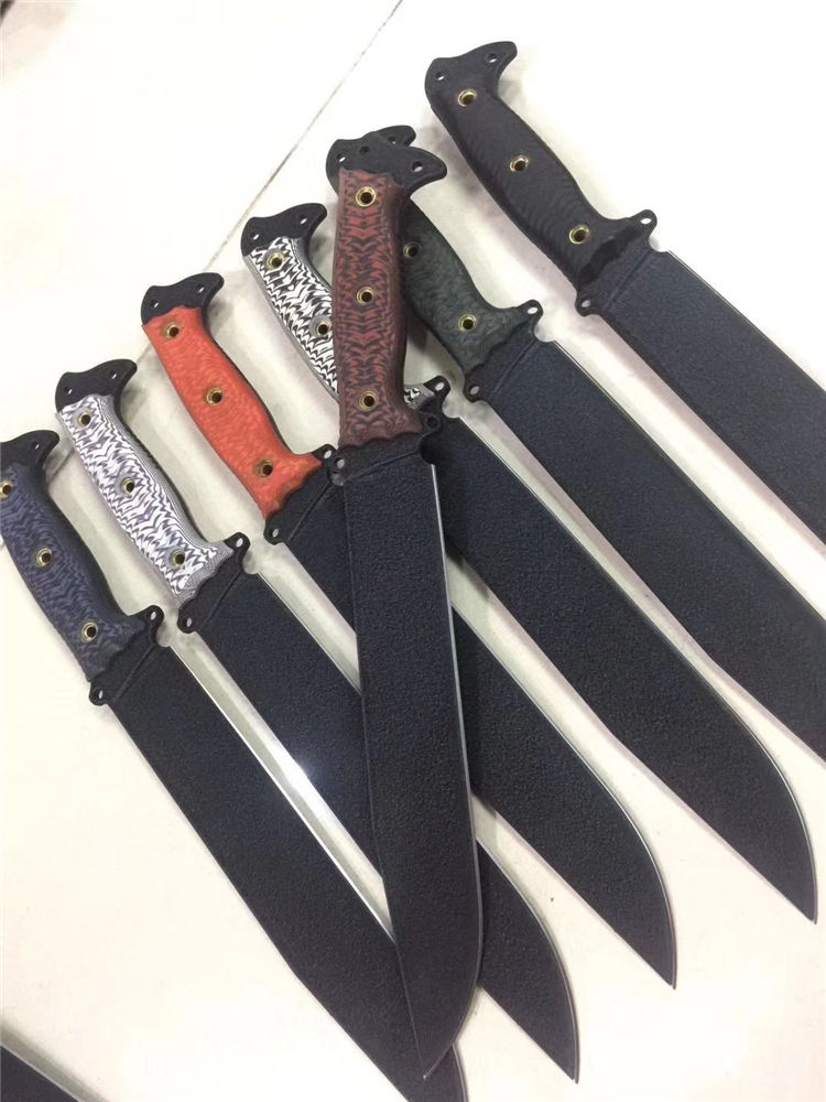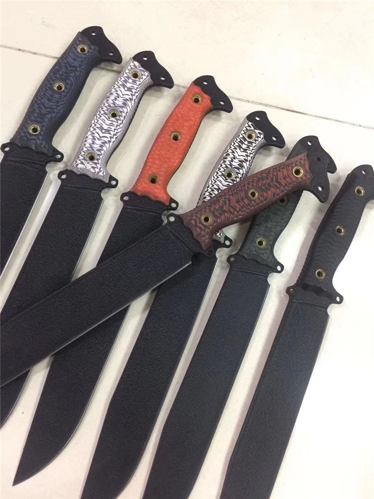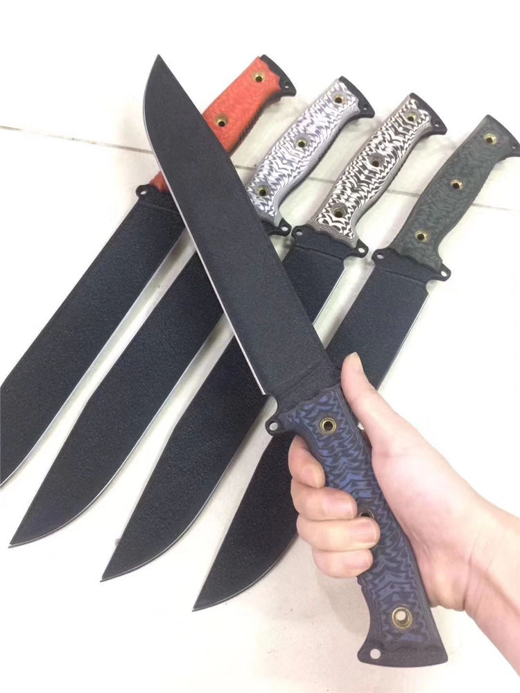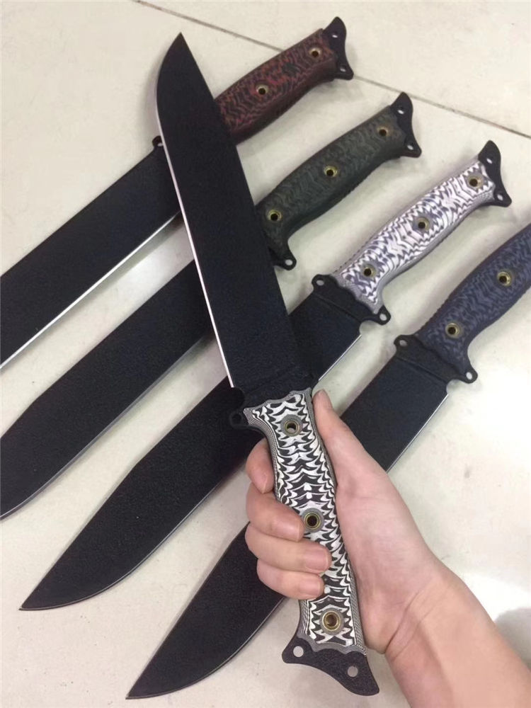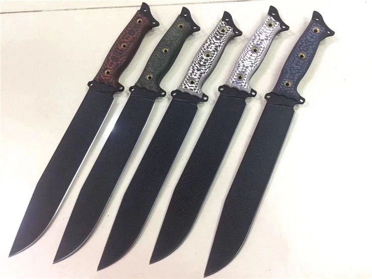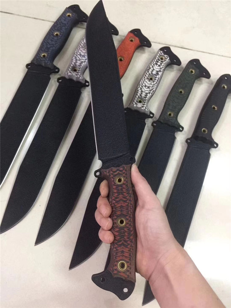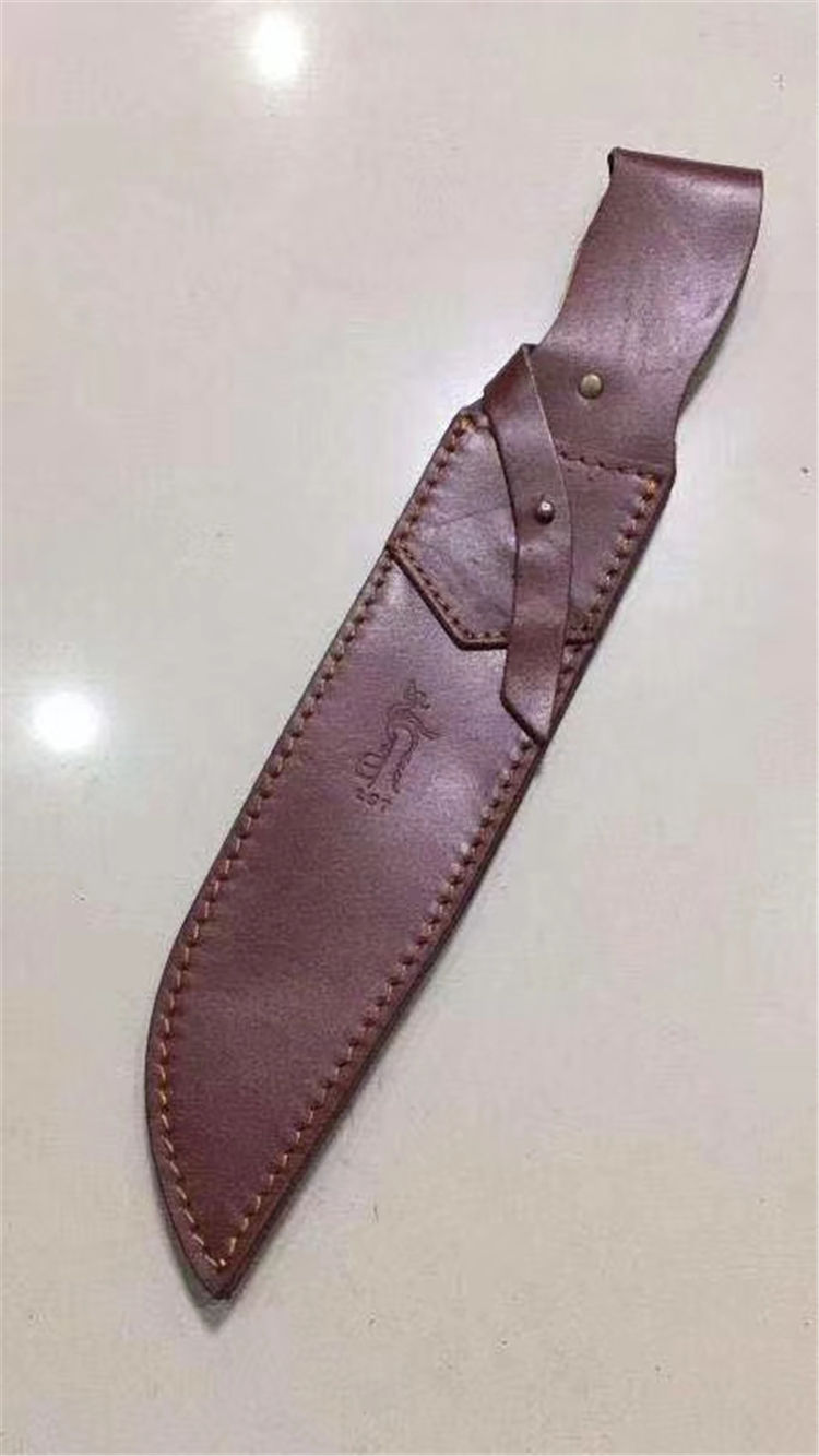 巴斯蒂内利酋长直刀 全长:420mm 刃长:256mm 刃厚:5mm 刃材:1095高碳钢 硬度:60HRC 表面:特沸龙涂层(防锈性能好) 刀鞘:皮鞘