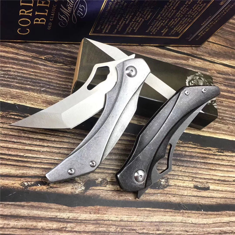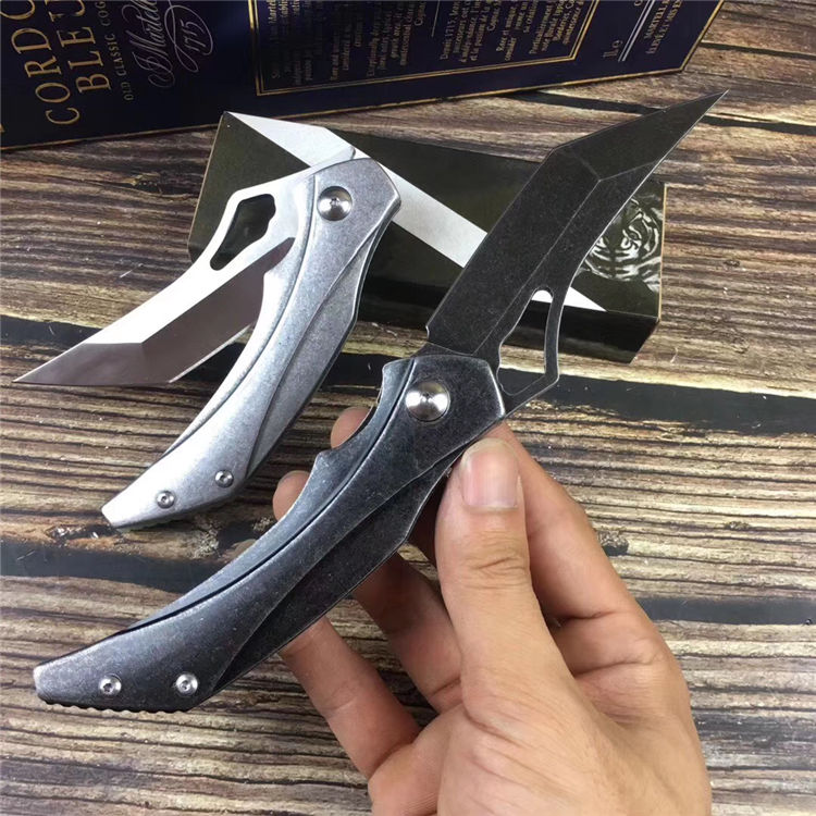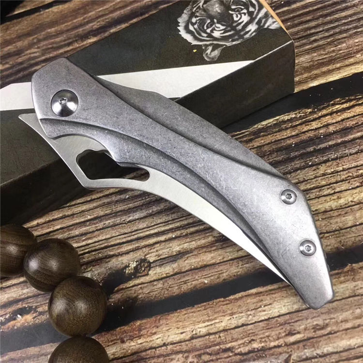 河马折刀 全长:21.5cm 刃长:9cm 柄长:12.5 刃宽:2.4cm 刃厚:0.4cm 刃材:5CR13MOV 硬度:58HRC 表面:镜光 刀柄:全钢+石洗