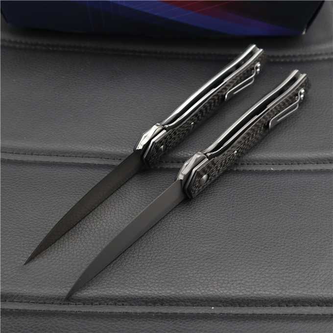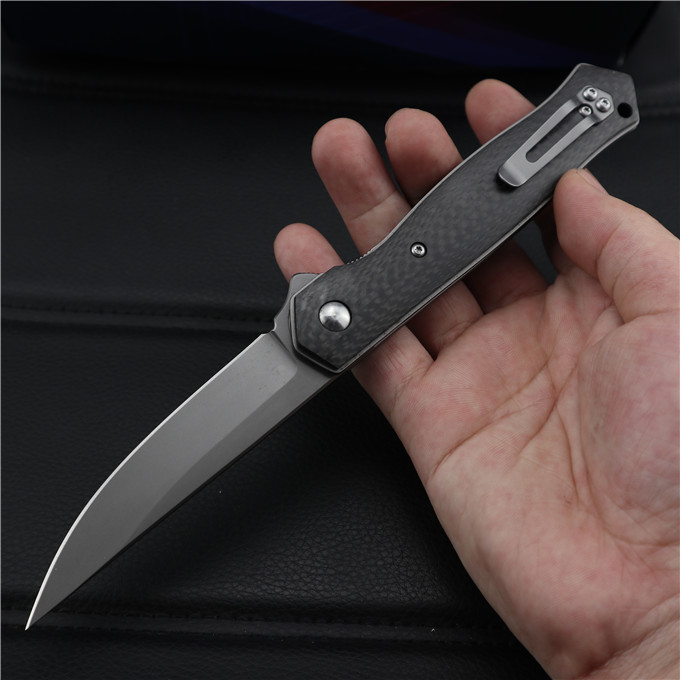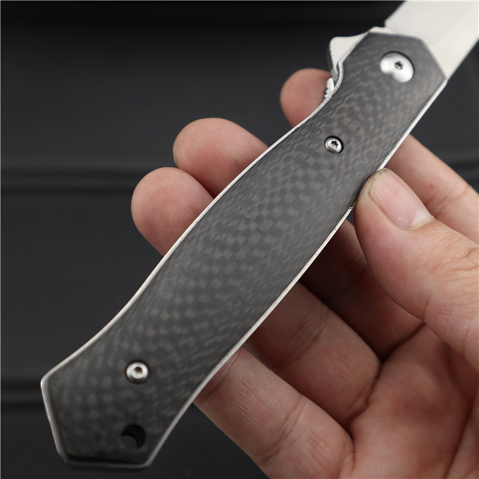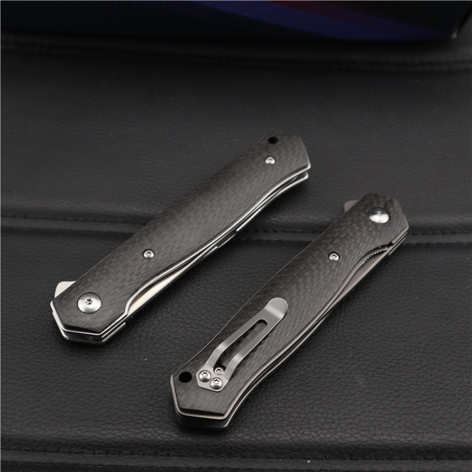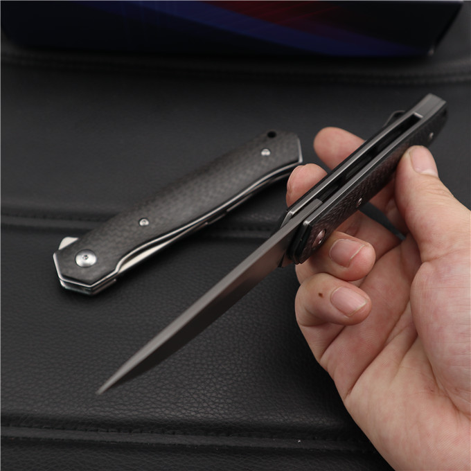博克BOKER碳纤柄必杀折刀 类型:轴承快开 刀刃:D2(假一罚十) HRC:60o±1o 刃厚:3.0mm 表面:砂光或镀钛 手柄内衬:2.0mm不锈钢减重内片 手柄:碳纤维 刃长:90mm 总长:215mm 重量:109g