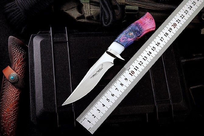 M390追龙直刀 全长:242MM 刃长:120MM 柄长:112MM 刃宽:28MM 刃厚:3.5MM 钢材:M390 硬度:61-62HRC 柄材:固化稳定木 资深老师傅作品纯手工制作,全部选用名贵材料打造奥地利一体钢M390粉末神钢,超级耐磨耐腐蚀,钢材韧性与防锈性保持度非常好,M390钢被称誉为神钢,可知它的综合性是非常好的一种钢材真空热处理