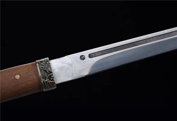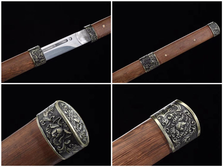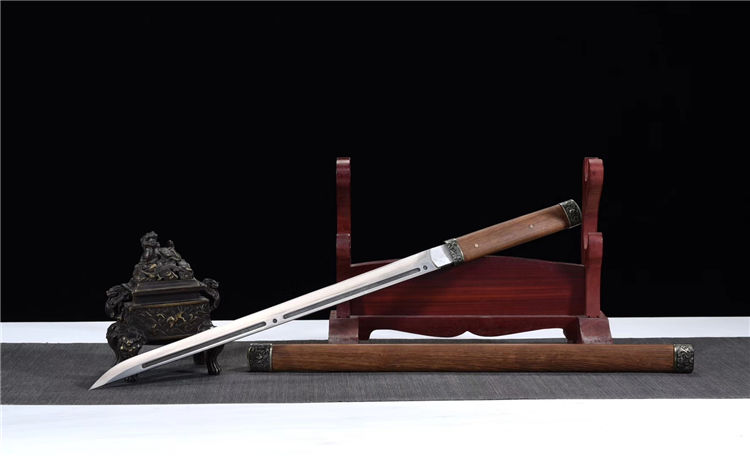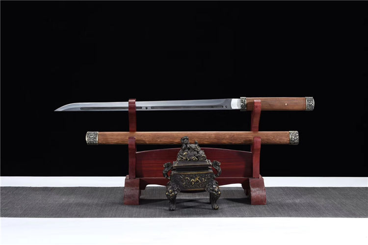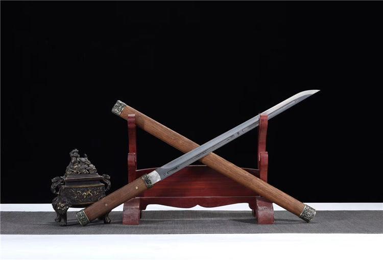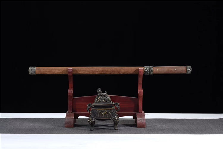 猛钢花魁唐刀 专业测试、请勿模仿 工艺:龙泉古法传统手工艺 装具:合金 刃材:高性能猛钢 柄材:花梨木 鞘材:花梨木 赠品:锦盒、养护油、布