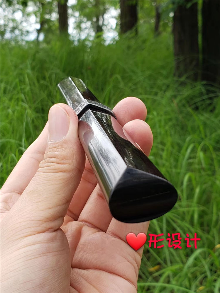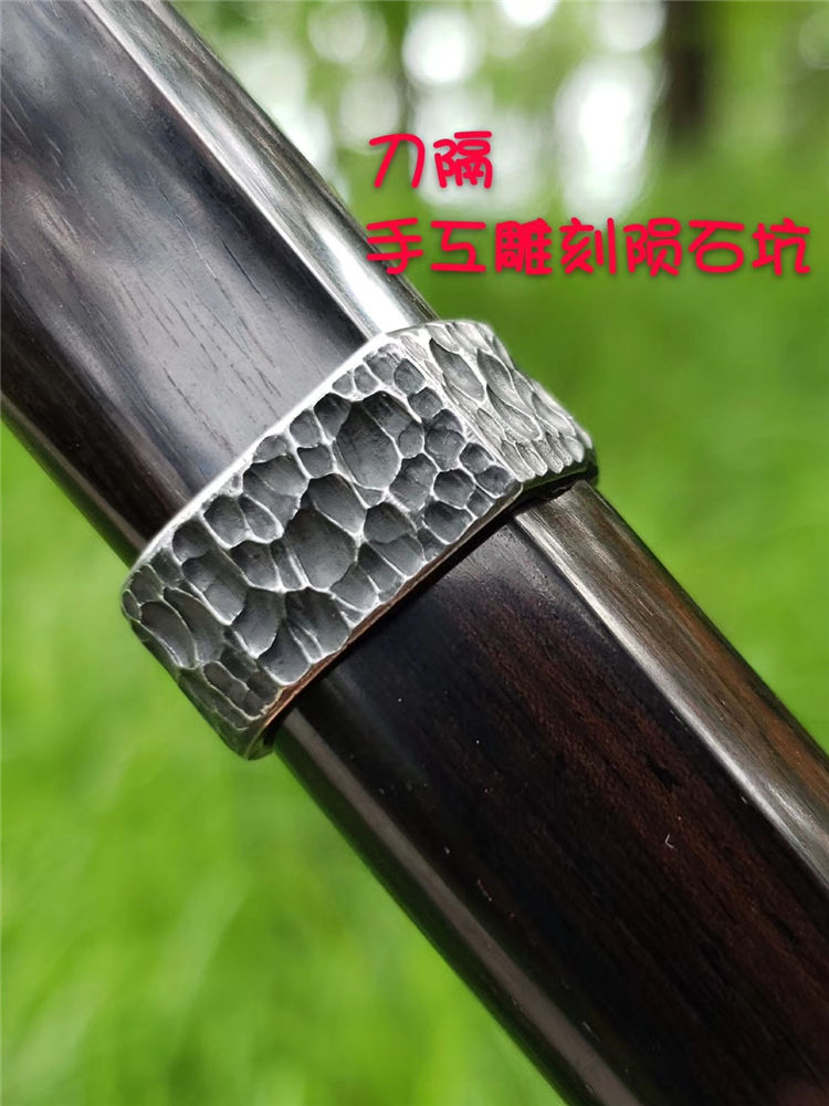 此款作品是简师傅对这句话完美的诠释,【简】外观简洁明了,细节之处却又与众不同,刀柄至刀鞘端由宽渐变而窄、由厚至薄,两端心形一线相连堪称点睛之笔。刀隔不锈钢手工雕刻陨石坑复古工艺,低调而又奢华。刀刃选用俄罗斯大马士革,花纹随性自然与众不同,精工开刃,锋利无比,刀鞘与刀柄精选老料黑檀木,复古礼盒包装