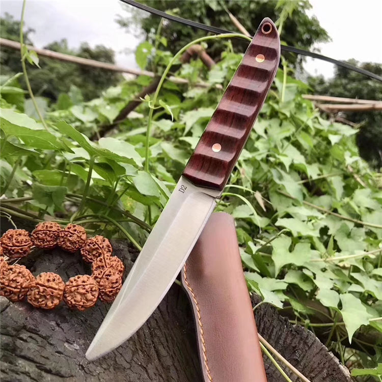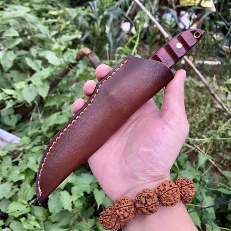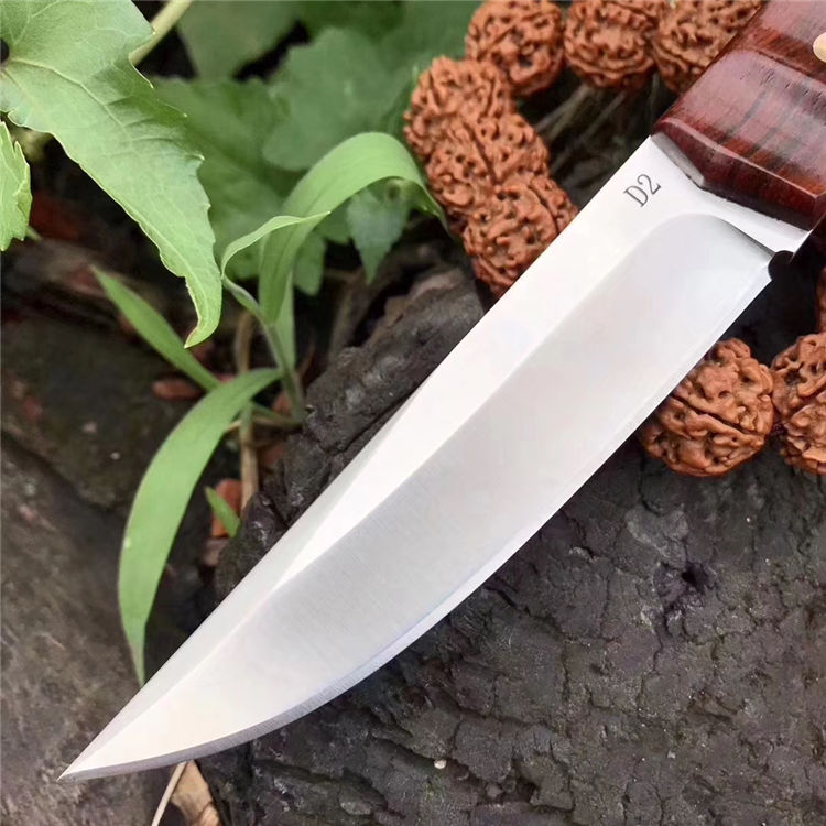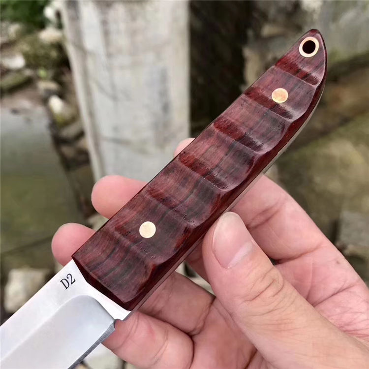 D2钢材高耐磨、含碳量1.5%,含铬量高达11.5%,经热处理硬度可达60HRC。一体龙骨坚固耐用东南亚进口黄檀木、做工细腻 晶莹剔透,加厚真皮套 细腻质感非常实用的一款刀
