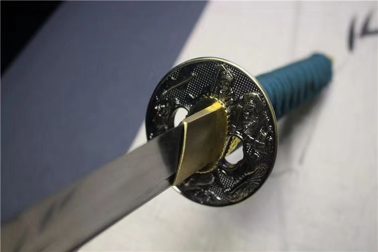八神协差武士刀 全长:76cm 刃长:51cm 柄长:22cm 刃宽:3.2cm 刃厚:0.7cm 重量约:1KG左右 刃材质:高硬度高锰钢,采用龙泉古法淬火工艺 ,十五道手工研磨,寒气逼人 鞘材质:龙泉实木喷漆拉丝鞘 柄材质:龙泉实木外铁黑鱼皮外绕绳 手感极佳 装具:青古铜套装 特点:锋利、外观精美、送礼佳品、自我收藏把玩 赠:锦盒、刀布、保养油