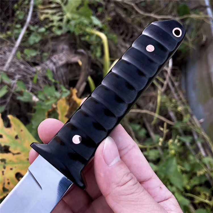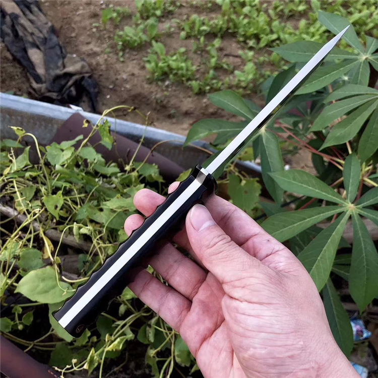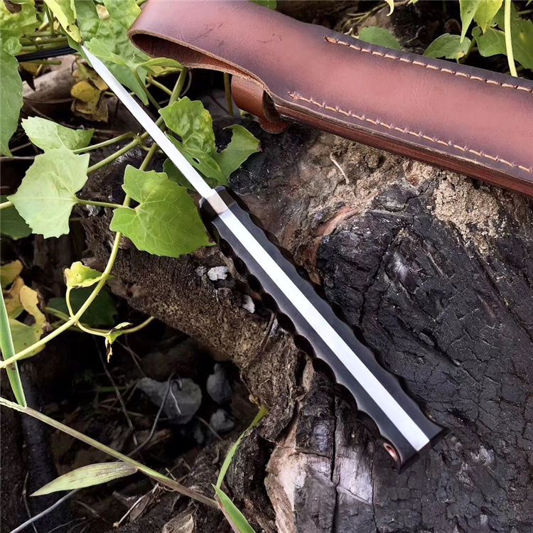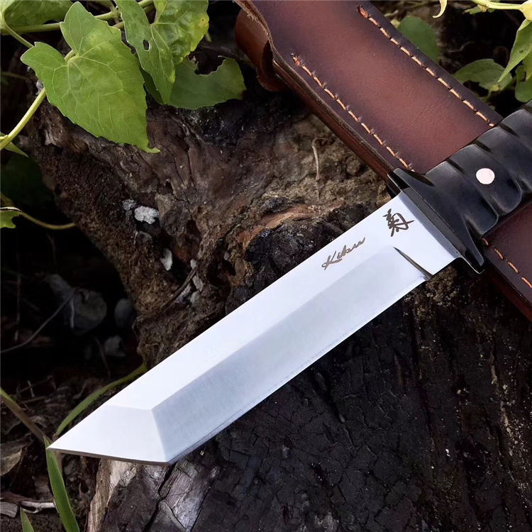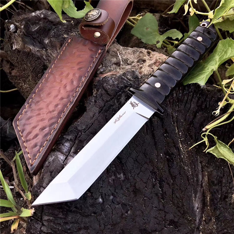 菊百战小武士刀 全长:24.3cm 刃长:12cm 柄长:11.8cm 刃厚:4.8mm 柄材:黑檀木 刃材:D2 硬度:59HRC 重量:310g