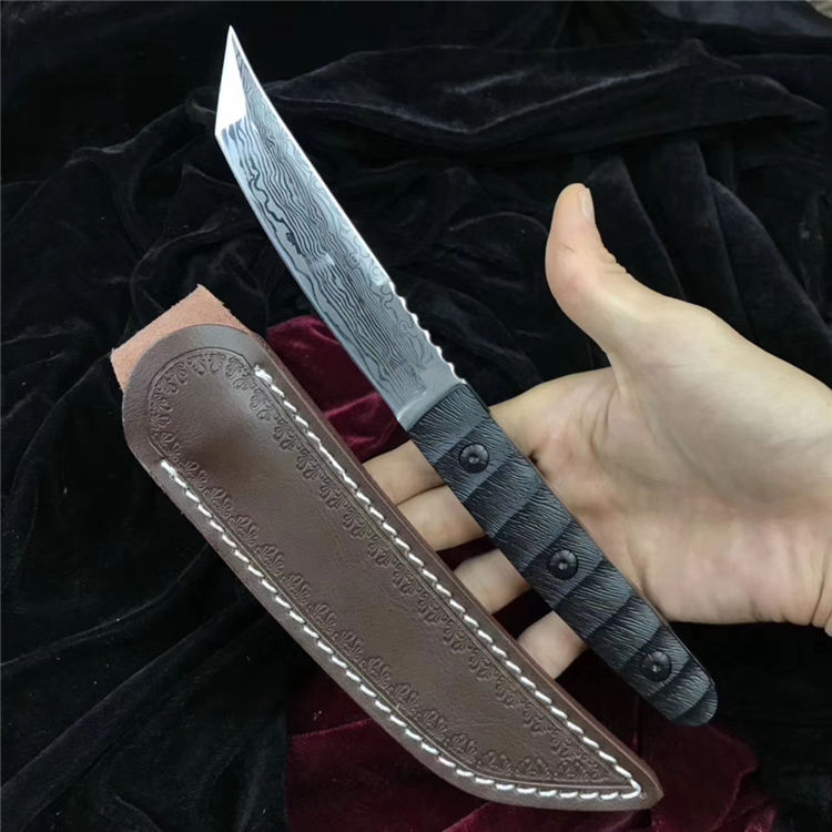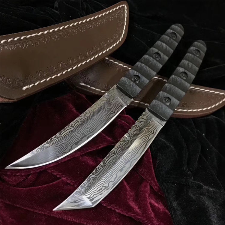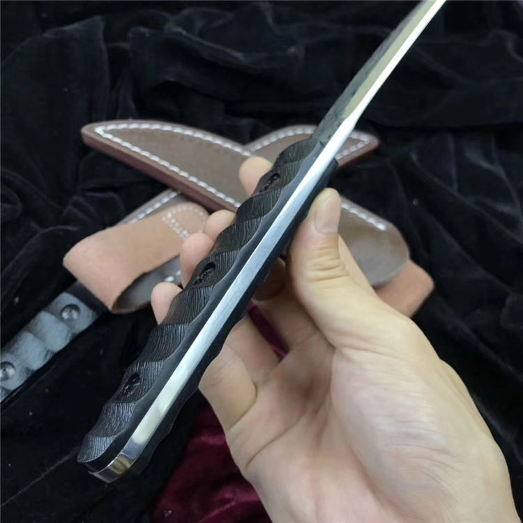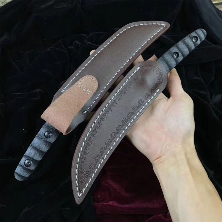 幽冥必杀直刀 刃材:400C钢激光花纹 柄材:G10 制作,刃口锋利 总长245MM 刃长:120MM 刃厚:5MM 刃宽:23MM 硬度:58HRC 热处理技术:真空热处理 开刃方式:水冷二次开刃,以锋利度为主 皮套包装:复古风格牛皮刀套 重量:223克(包含皮套)