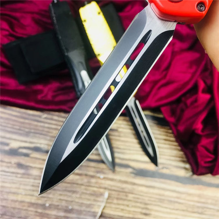 镭射直出跳刀 全长:22.5CM(含尾椎) 刃长:9CM 柄长:13.5CM 刃宽:8CM(最宽处) 刃材:5Cr13Mov 硬度:57HRC 表面:拉丝 柄材:全钢 锁型:直出