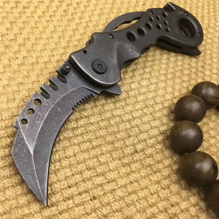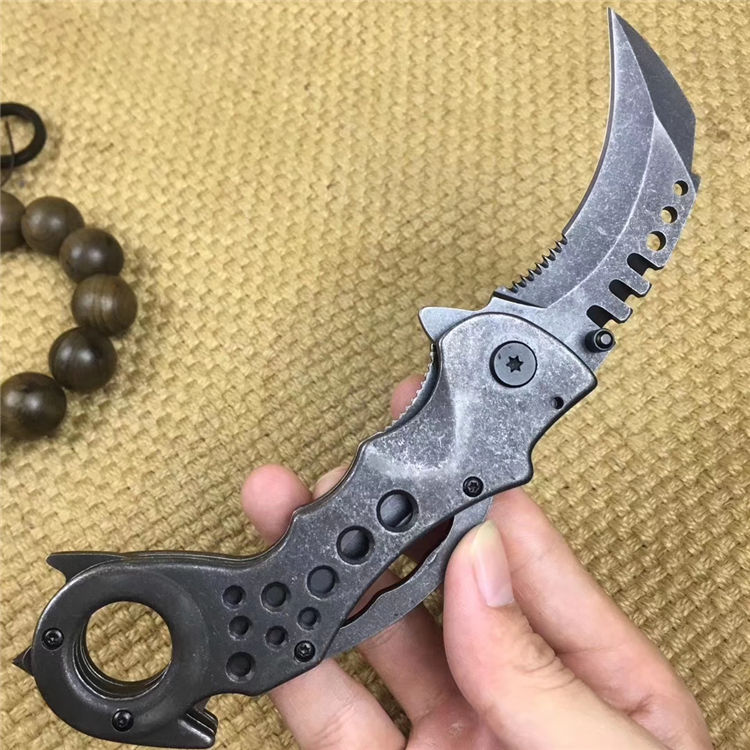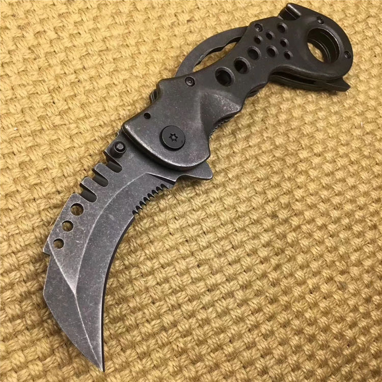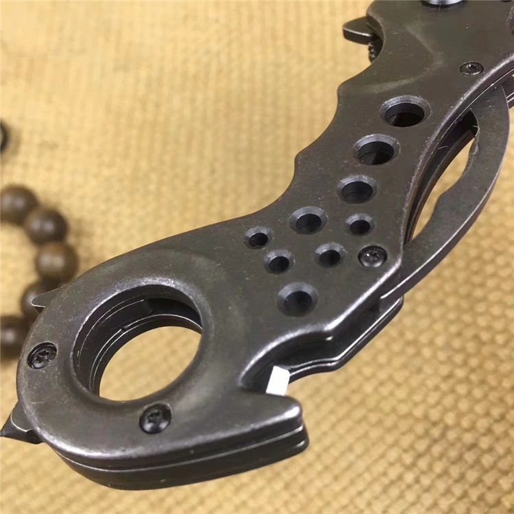 暴力M快开爪刀 全长:195mm 刃长:70mm 柄长:125mm 刃宽:30mm 刃厚:40mm 刃材:5Cr15Mov 重量:320g(含包装) 硬度:57HRC 表面:石洗 柄材:全钢 锁型:侧锁