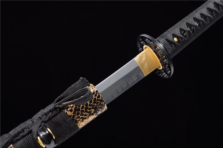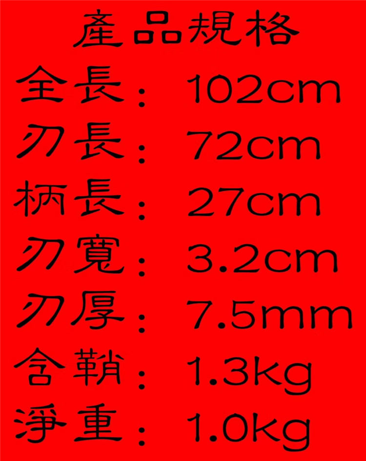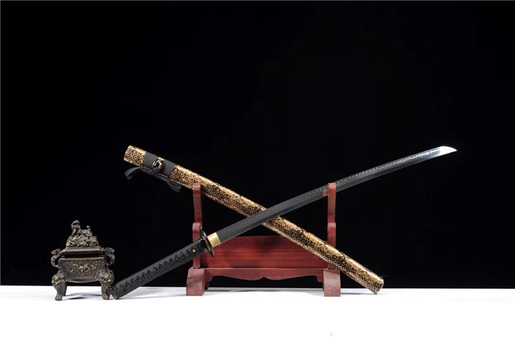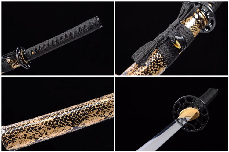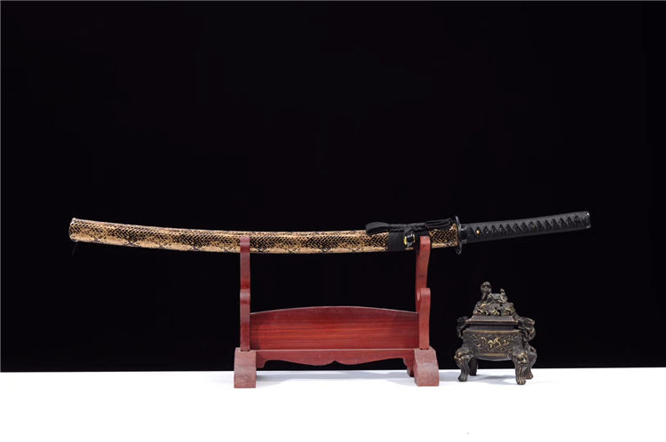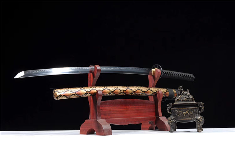 狂蟒武士刀 专业测试、请勿模仿 工艺:龙泉古法传统手工艺 装具:铁装 刃材:T10烧刃 柄材:实木绕绳 鞘材:实木皮鞘 赠品:锦盒、养护油、布 备注:D2材质的500