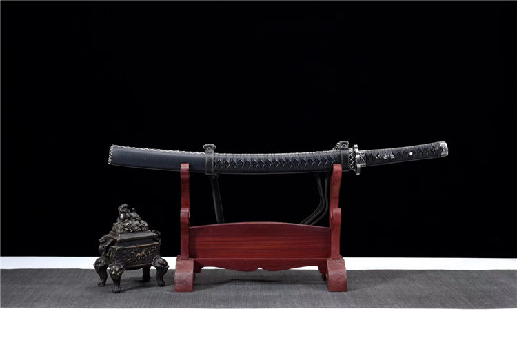 刀锋武士刀 专业测试、请勿模仿 工艺:古法传统手工艺 装具:合金 刃材:锋钢研磨灰 柄材:实木绕绳 鞘材:实木皮鞘 赠品:锦盒、养护油、布