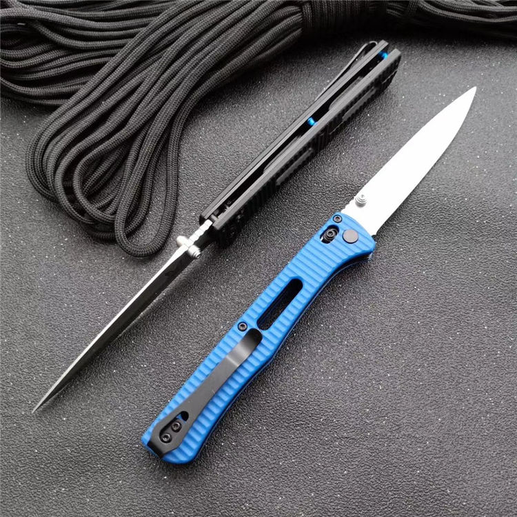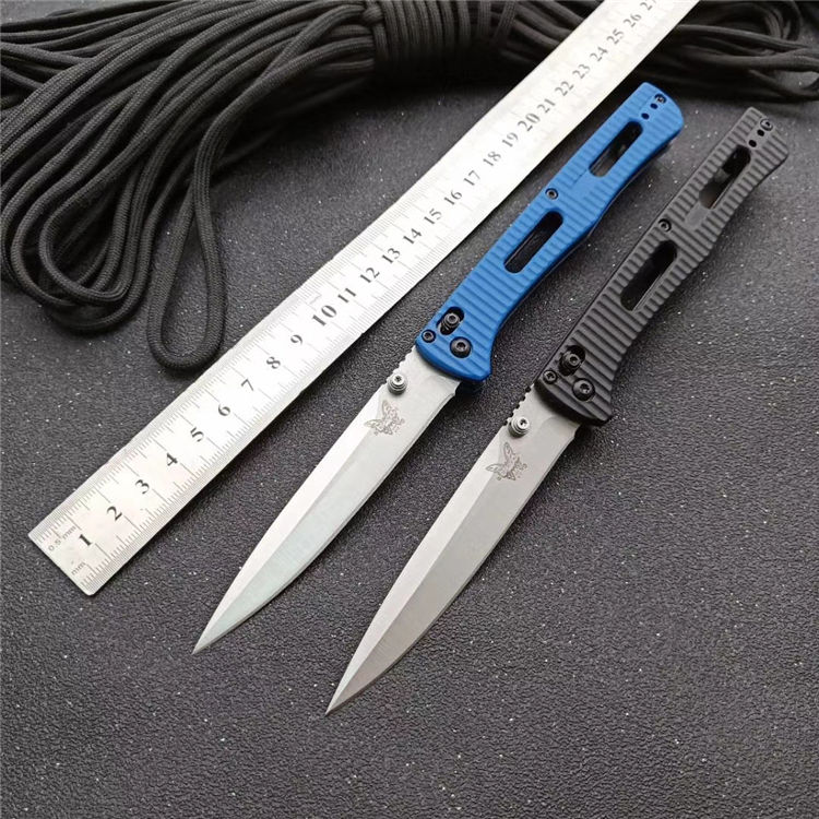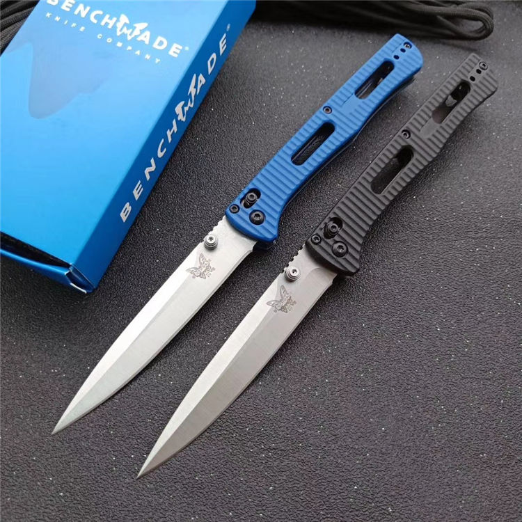 巨力版蝴蝶417折刀 刃材:440C钢 柄材:硬尼龙玻璃纤维 打开全长:22.1厘米 刀片长:9.8厘米 闭合长度:12.1厘米 刃厚:2.78毫米 刀片表面处理:石洗+缎面 硬度:57-58HRC 刀净重:78克 系统:AXIS 包装:玩家刀包+蓝色包装盒
