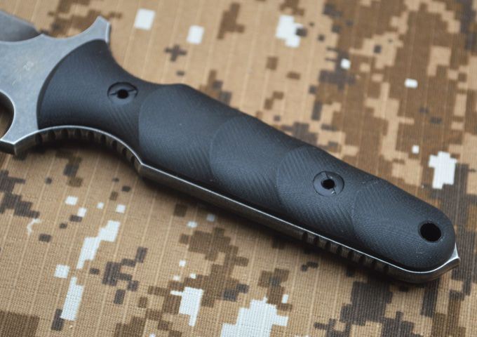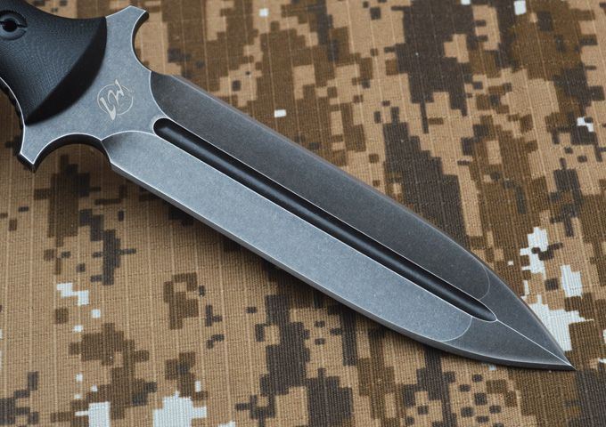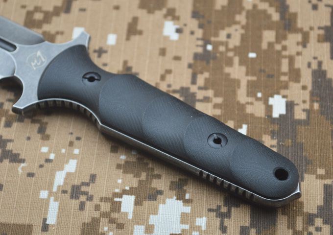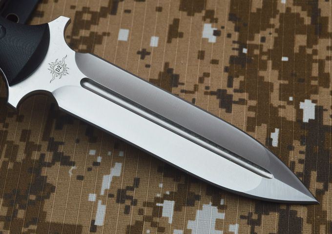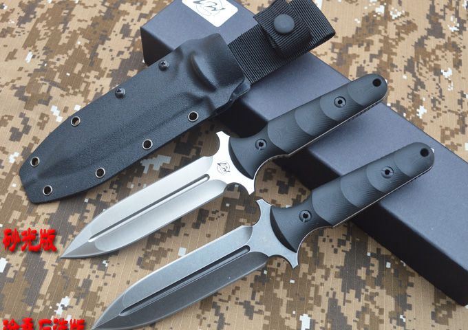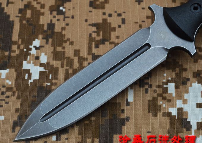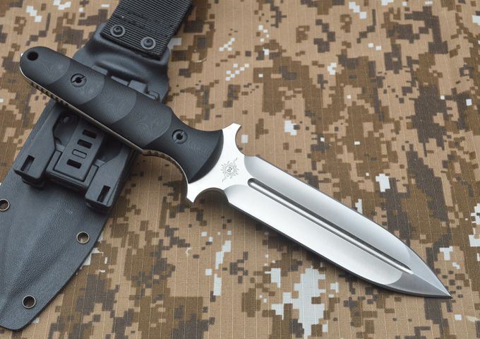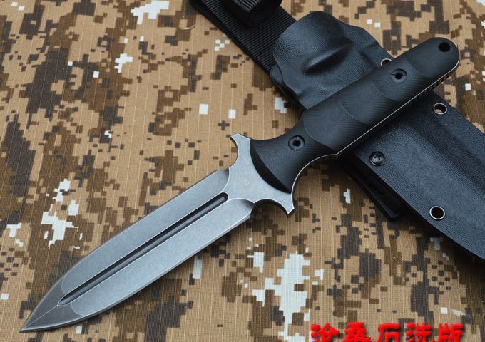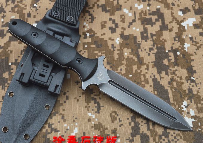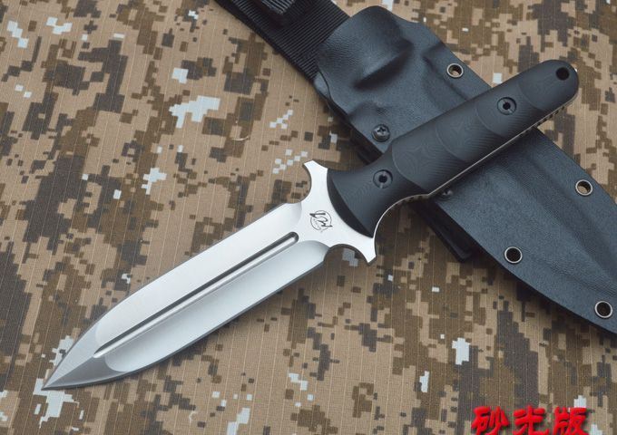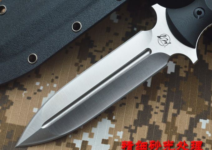 刃材:D2 全长:263mm 刃长:14mm 刃厚:5.3mm 刃宽:33mm 表面:精幼砂光 硬度:HRC59-60 (真空油淬热处理) 手柄:G-10+表面防滑处理 刀鞘:进口Kydex鞘 (织带+K鞘夹) 重量:0.5KG(含包装物)