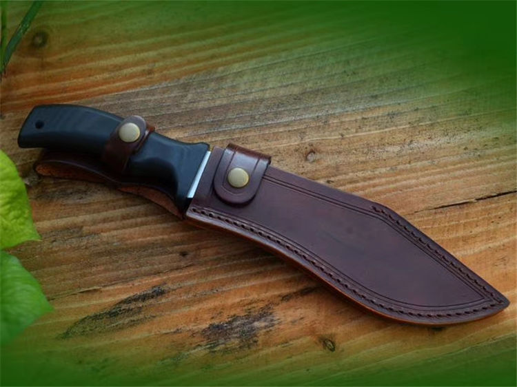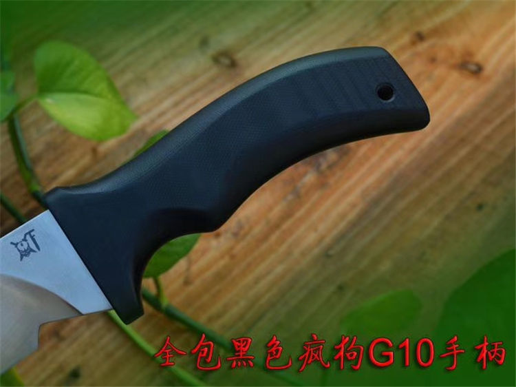 刃面砂光真空热处理(加时回火3次)韧性更好手柄全包黑色疯狗G10手柄二次开刃减震防锈,植糅皮套手工雕槽做旧黑色礼盒包装