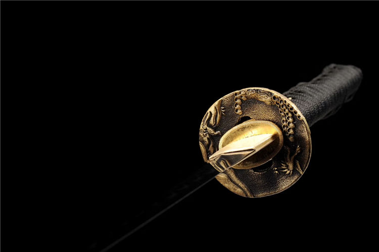 御鹤武士刀 专业测试、请勿模仿 工艺:龙泉古法传统手工艺 装具:纯铜 刃材:T10烧刃 柄材:实木鱼皮柄 鞘材:实木漆鞘 赠品:高端锦盒、养护油、布