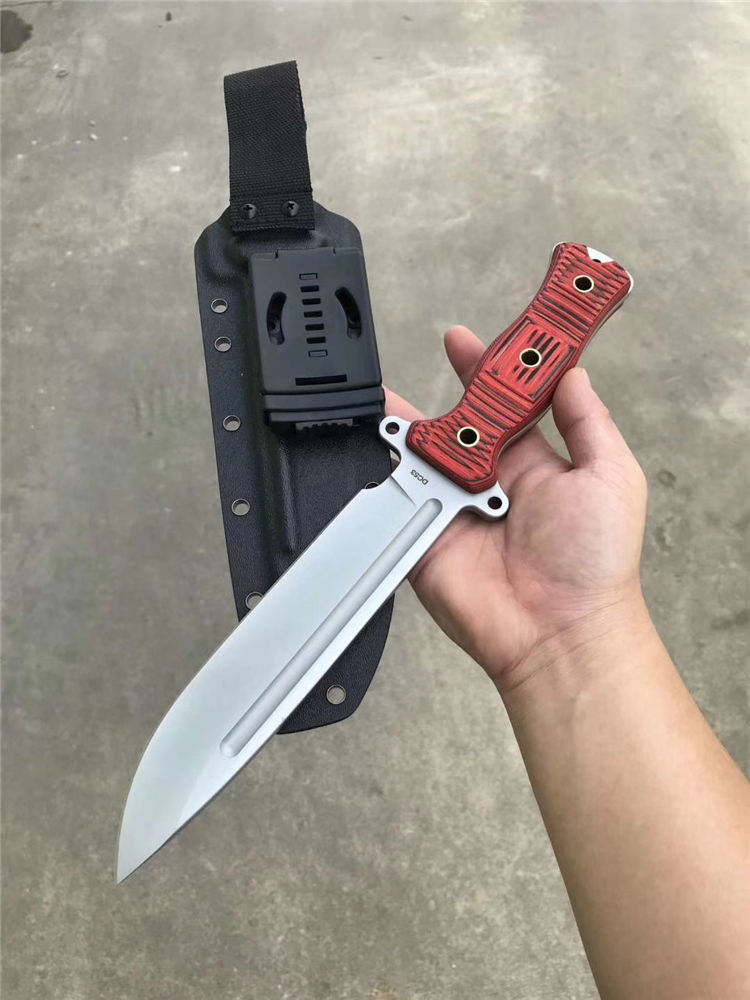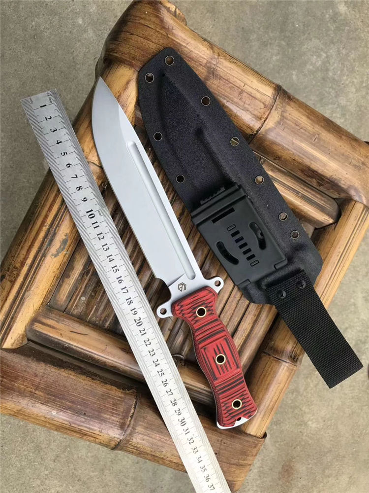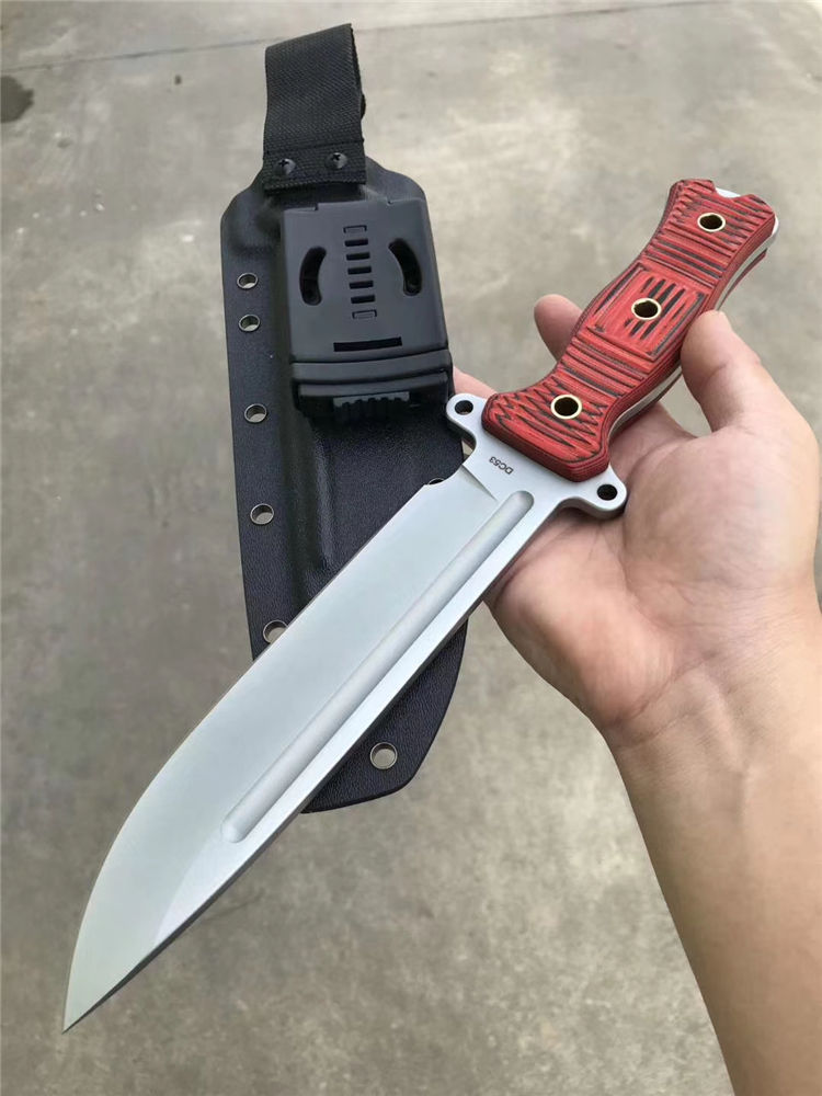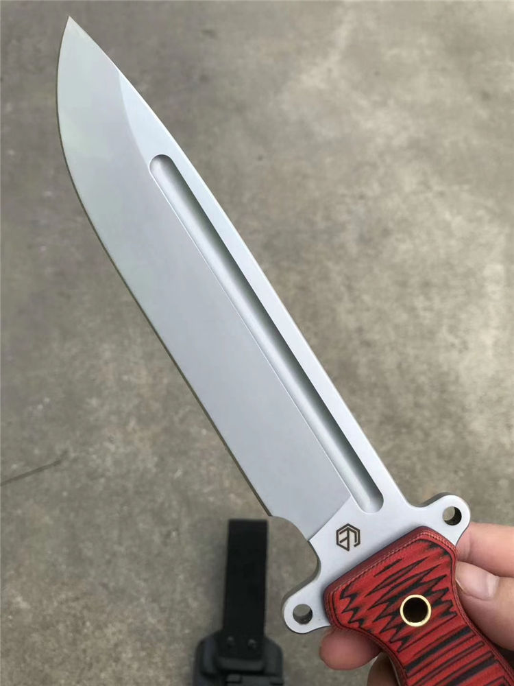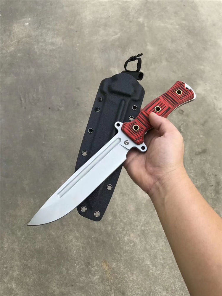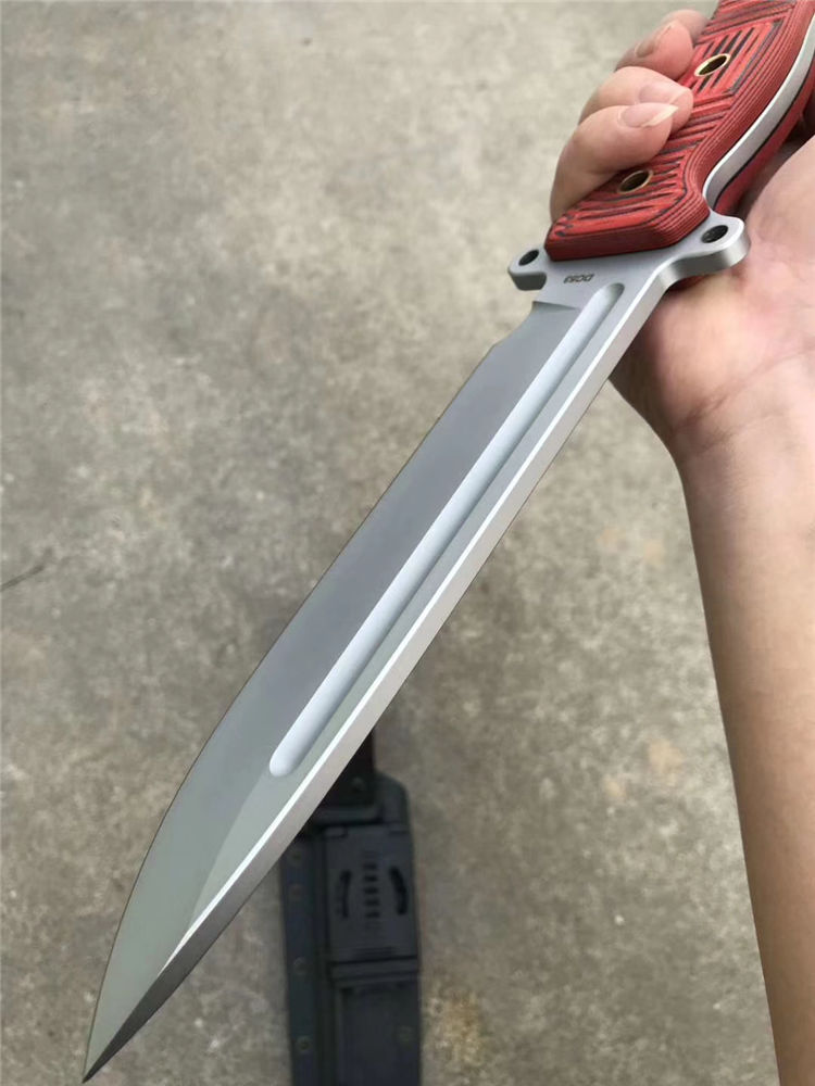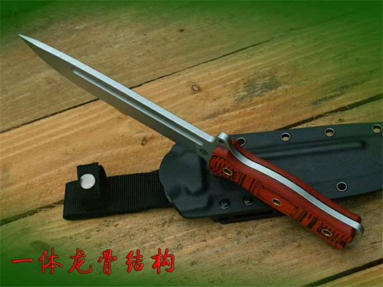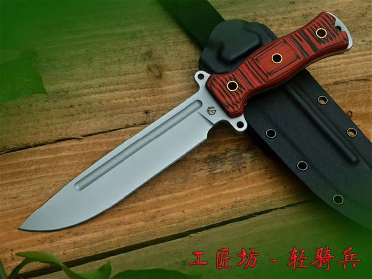 经典轻骑兵直刀 全长:333mm 柄长:138mm 刃长:195mm 刃厚:6.0mm 刃宽:42mm(最宽处) 刃材:进口DC53模具钢,真材实料 开刃方式:二次开刃以锋利度为主 重量:500g(刀净重,不含鞘) 硬度:61HRC真空热处理 柄材:进口红黑夹层彩色G10 刀鞘:美国进口Kydex(两边加钉坚固)夹子和代扣 开v方式,数控V精磨 表面处理:玻璃珠喷砂,防刮透明镀烙效果 热处理:真空油淬(增加晶体颗粒细腻度,具有最好的韧性) 包装:精美礼品盒