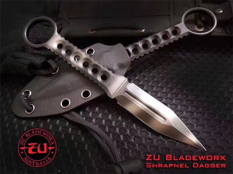白头翁手刺 全长:约193mm 刃长:约78mm 柄长:约109mm 刃厚:6.0mm 重量:约96g 刀鞘:K鞘 刃材:A2工具钢,深冷热处理 表面处理:表面镀黑钛/虎纹处理刀刃 硬度:58-60HRC