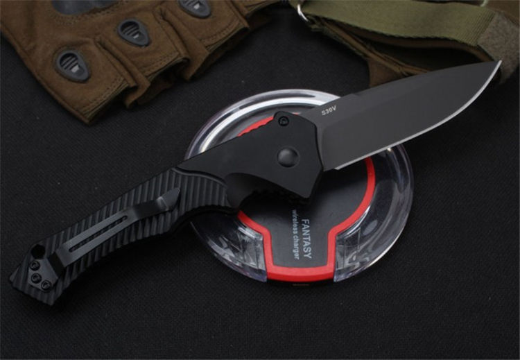 蝴蝶9600BK折叠跳刀 总长:21.6CM 刃长:86mm 刀片厚度:3.2mm 刀片材质:S30V 硬度:58-59HRC 表面处理:黑色镀钛 手柄材质:铝合金 刀重:127g