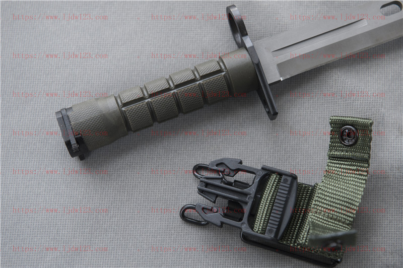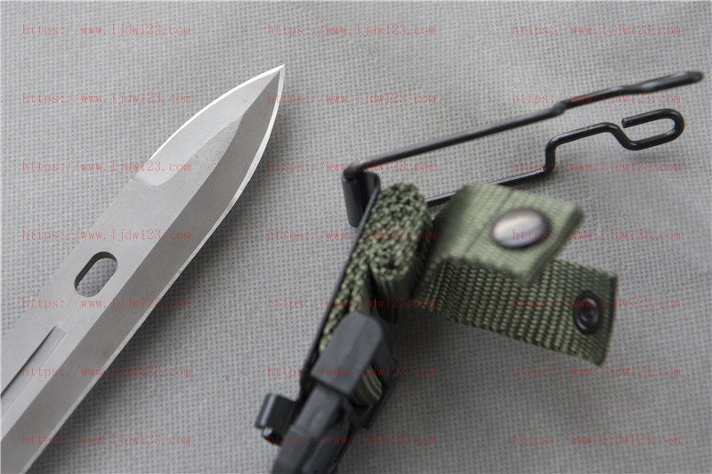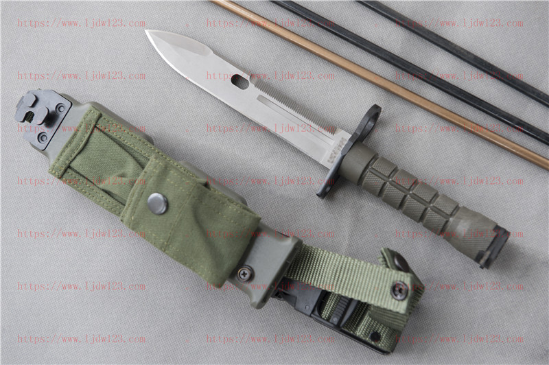 正品北方先锋M9-K5刺刀 全长:30.8 cm 刃长:18 cm 刃厚:0.6 cm 锯齿段:7.4 cm 重量:780 g 刃材:高品质440H 硬度:58-60H M9式刺刀是在弗罗比斯公司的巴克马斯特狩猎刀的基础上改进而成的。 标准型M9军刀的主要诸元: 刺,割,砍、削、劈都可以