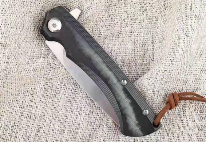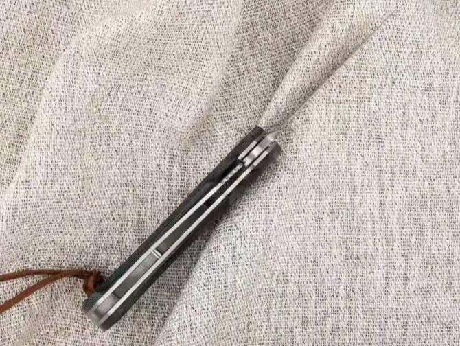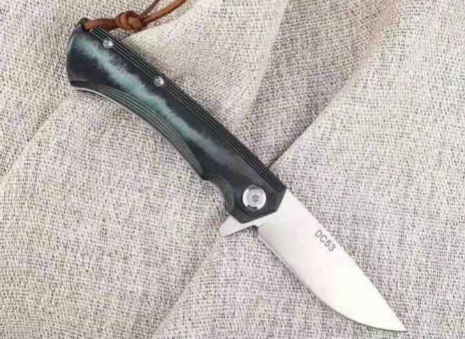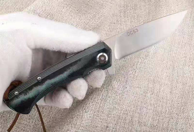 雨刃折刀 全长:17.5CM 刃长:7CM 柄长:10.5CM 刃厚:0.4CM 刃宽:2CM 刃材:DC53 柄宽:2.5CM 柄材:双色米克塔 硬度:60HRC 重量:90克