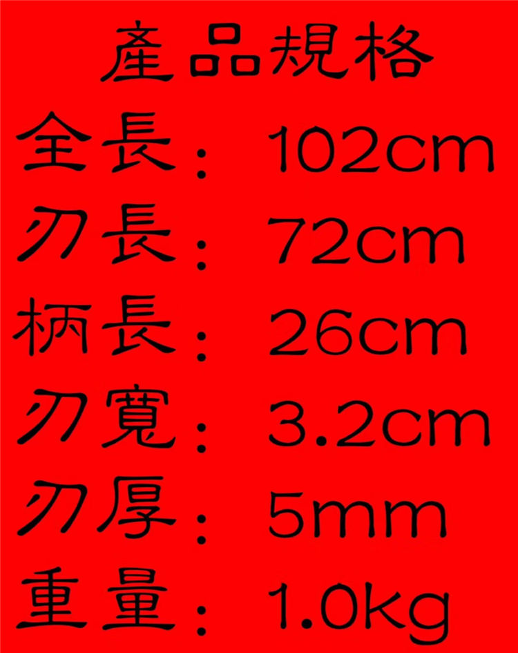 红头棍武士刀 专业测试、请勿模仿 工艺:龙泉古法传统手工艺 装具:无 刃材:高性能猛钢 柄材:实木皮柄 鞘材:实木皮鞘 赠品:锦盒、养护油、布