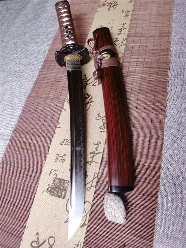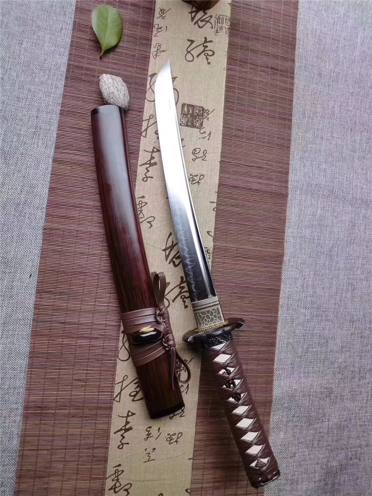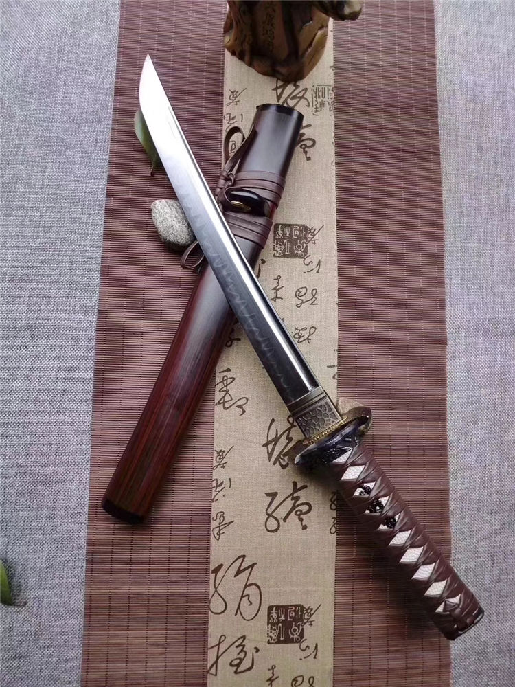 魑魅短武士刀 专业测试、请勿模仿 工艺:龙泉古法传统手工艺 装具:合金 刃材:T10烧刃 柄材:实木绕绳 鞘材:实木漆鞘 赠品:锦盒、养护油、布