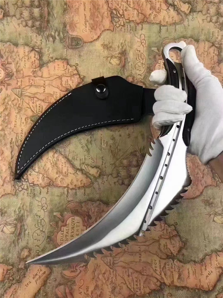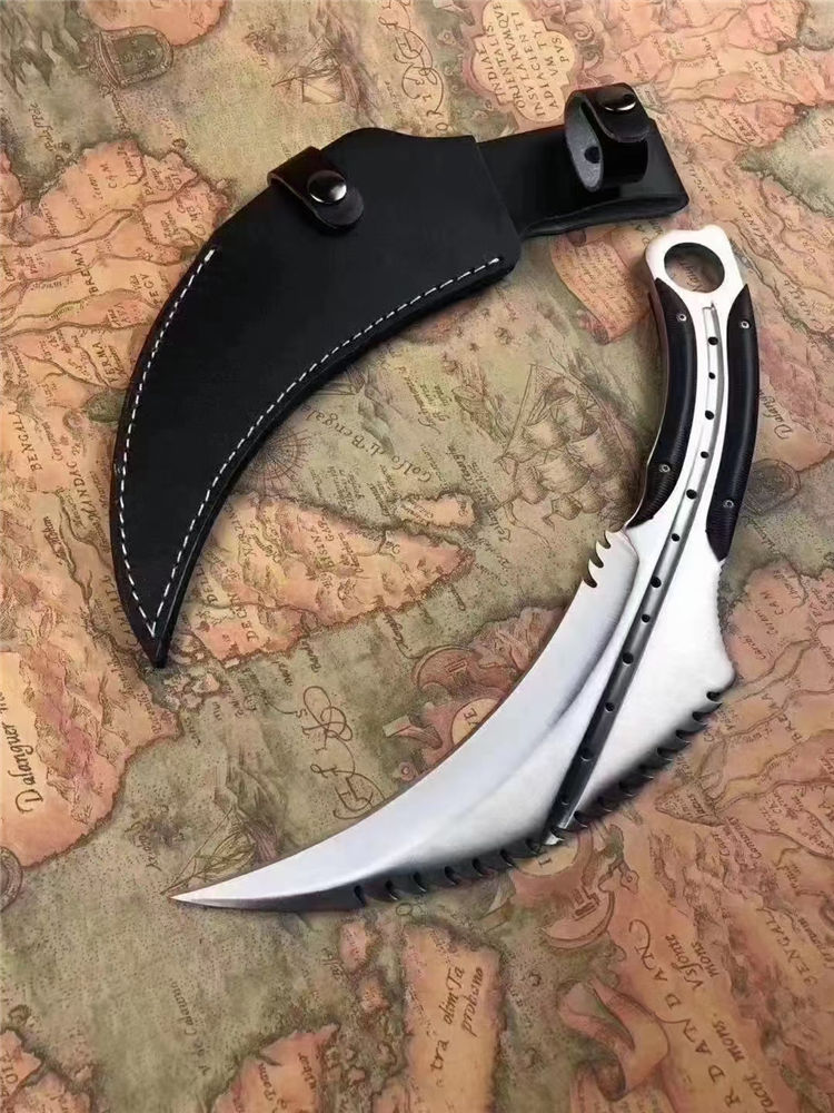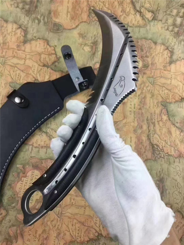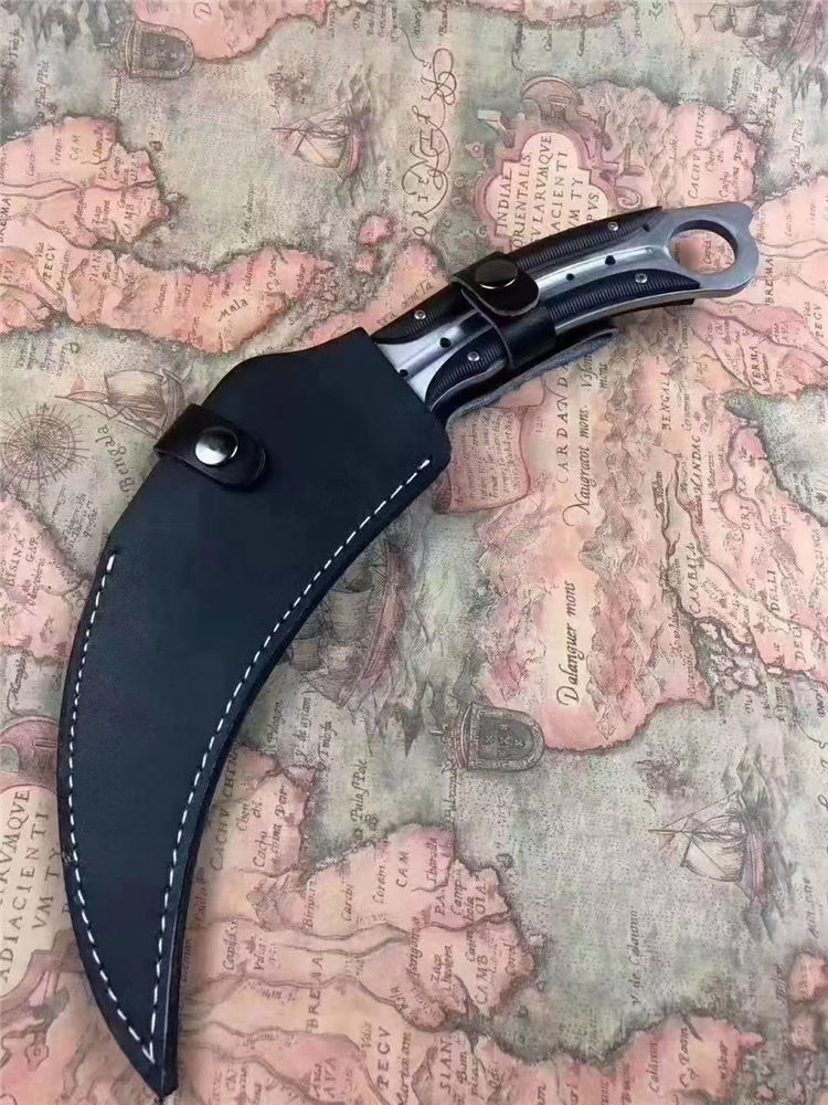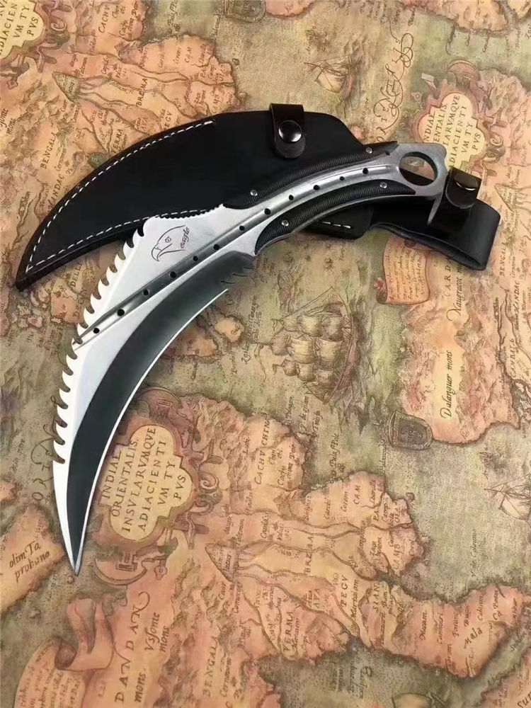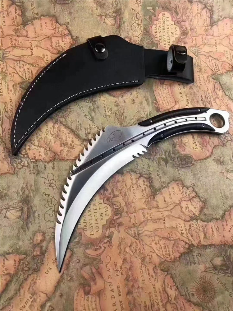 悍鹰爪刀 刃长:19Cm 全长:33Cm 刃最宽处:65mm 刃厚:6mm 刃材:8cr18mov