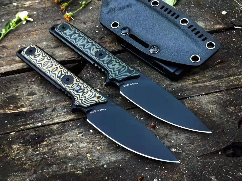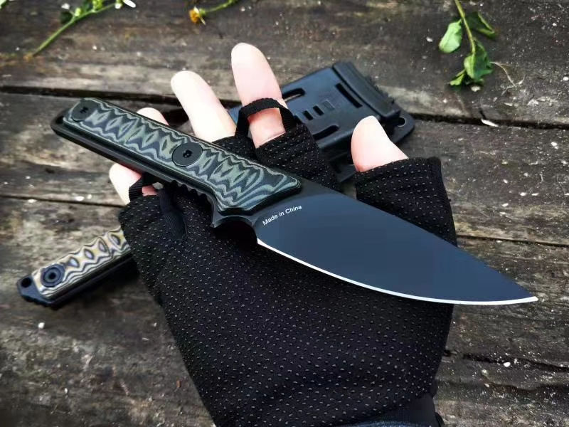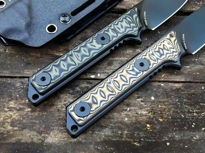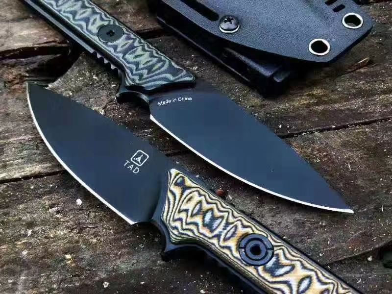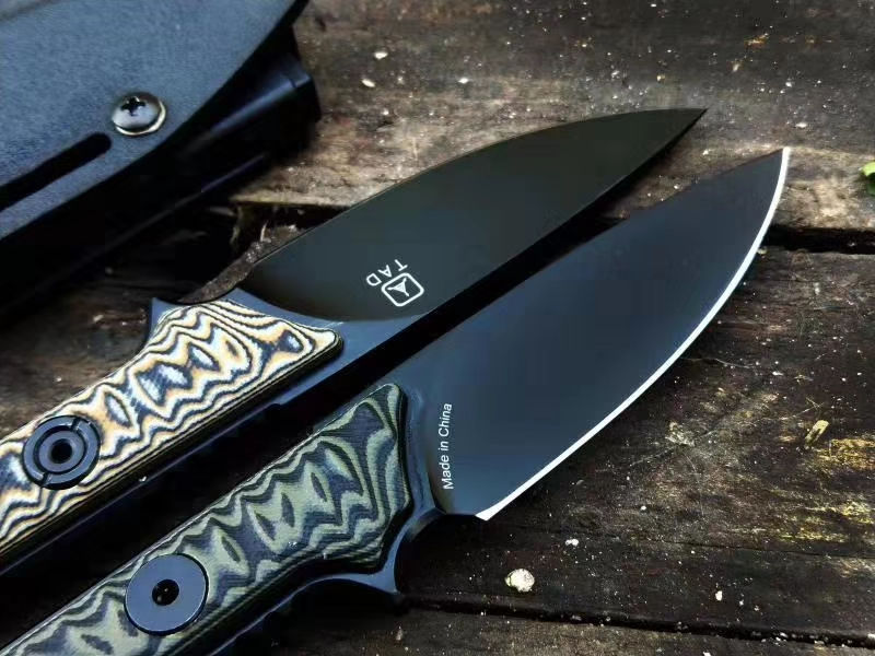 TADGear直刀 全长:约202mm 刃钢:A2工具钢,深冷热处理 表面:镀黑钛处理刀刃 硬度:58-60HRC 刃厚:约7.5mm 刃长:约88mm 柄长:约102mm 柄材及处理:三维加工双色G10 重量:约210g 配K鞘