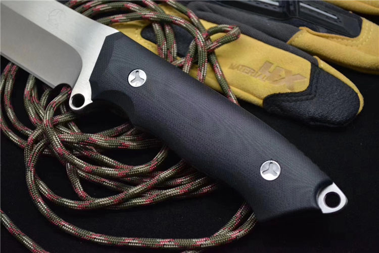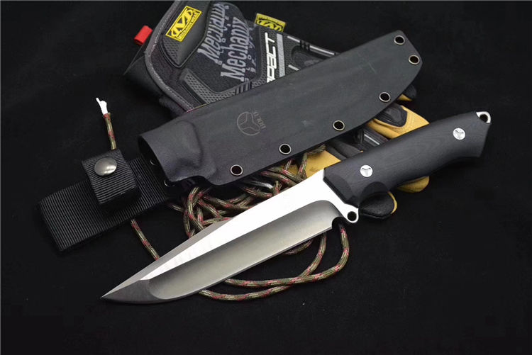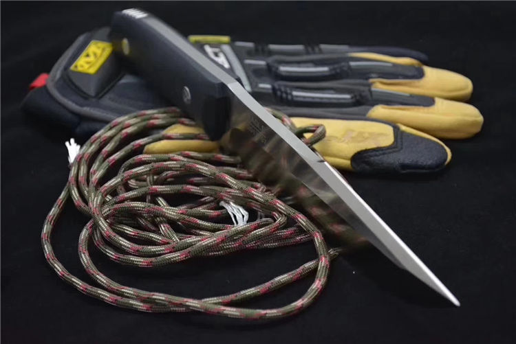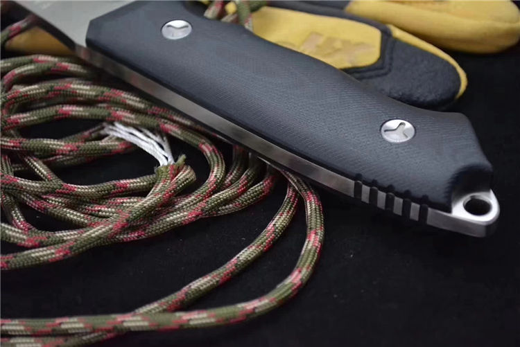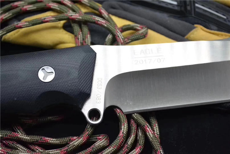 博尔特鹰直刀 全长:301mm 刃长:168mm 柄长:133mm 刃厚:6mm 刃最宽处:38mm 刃材:DC53(线切割开料) 硬度:61-62HRC 热处理:真空淬油热处理 柄材:黑色G10+logo螺丝对锁钉 刀鞘:K鞘+带扣 净重:380g 刃面:凹磨,平面幼拉丝处理,刃线立体感超强 类型:以锋利度,韧性保持度最出色 包装:黑色硬纸盒,刀油,伞绳