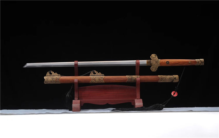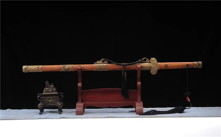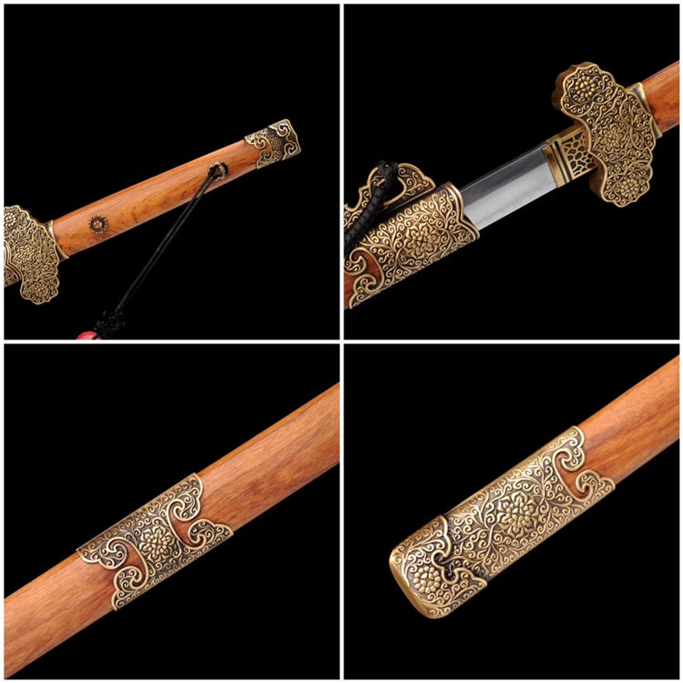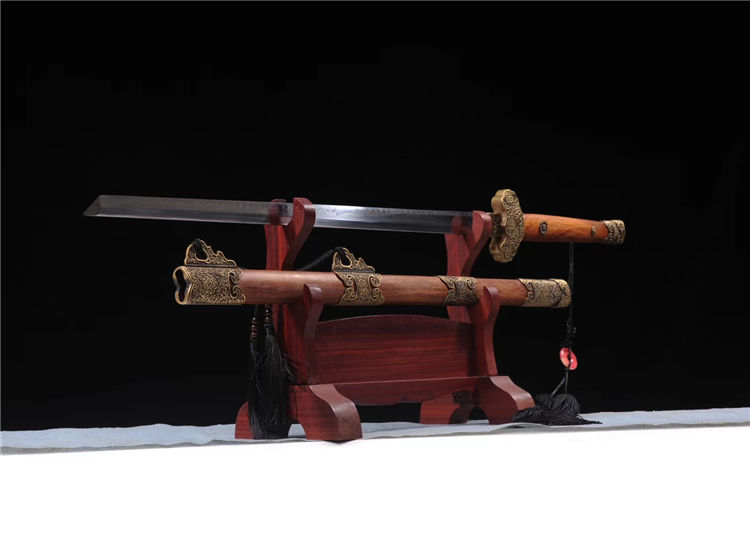 君者唐横刀 专业测试、请勿模仿 工艺:龙泉古法传统手工艺 装具:铜装 刃材:T10烧刃 柄材:酸枝木 鞘材:酸枝木 赠品:高端锦盒、养护油、布