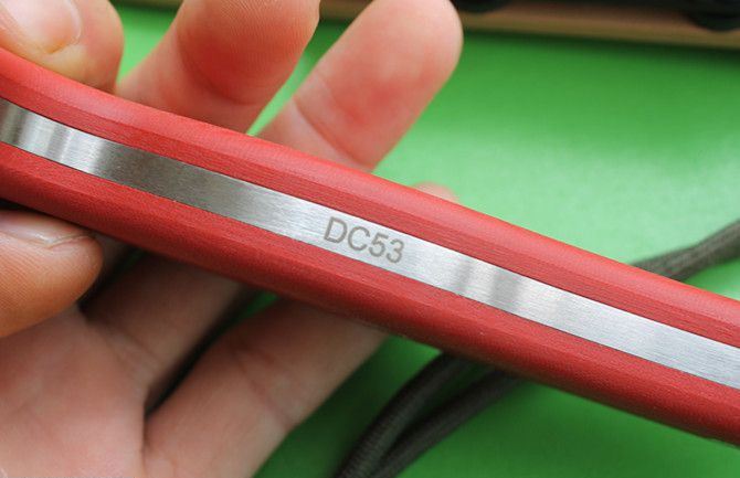 全 长:29.5cm 刃 长:16.2cm 刃 厚:4.5mm 刃 材:DC53 柄 材:红色G10 硬 度:59Hrc 表 面:金属拉丝 刀 套:K鞘 净 重:320g 工 艺:水磨刃/切削 类 型:中型