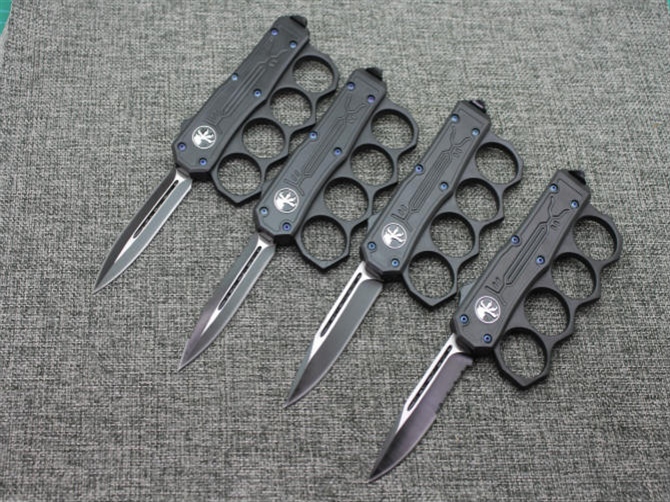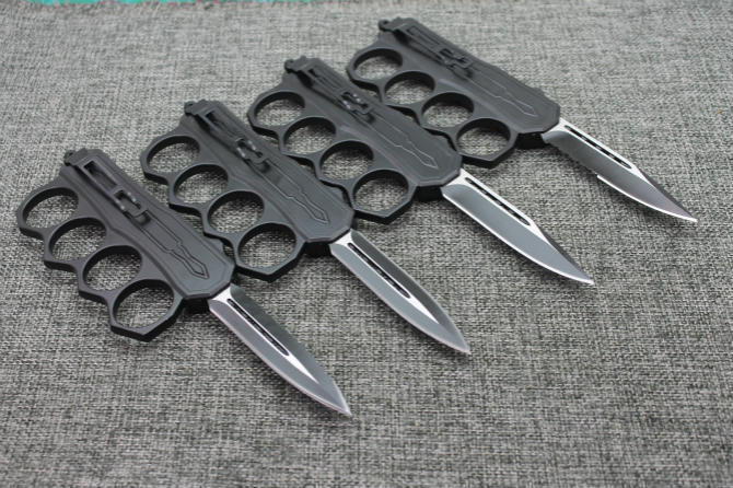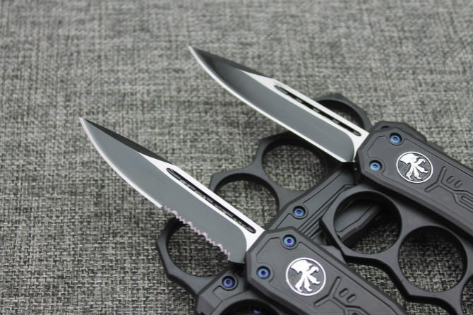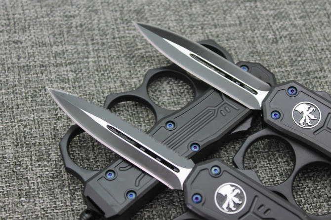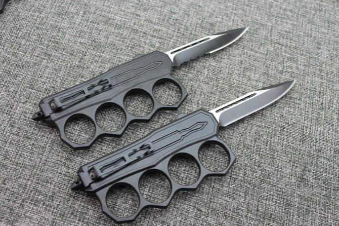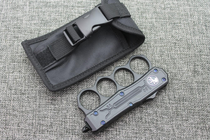 微技术手环直出跳刀 全长:23cm(含尾锥长度) 刃长:9.cm 刃厚:3mm 刃宽:1.8CM 刃材:440 硬度:57HRC 总重量:480.0克(含包装物) 表面:发黑 柄材:锌铝合金 刀鞘:尼龙 锁闭:弹簧直出 备注:带背夹和撞玻器,分双锋半齿各单锋半齿,下单请注明