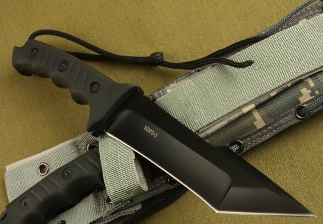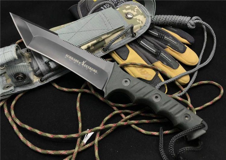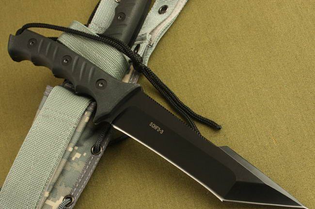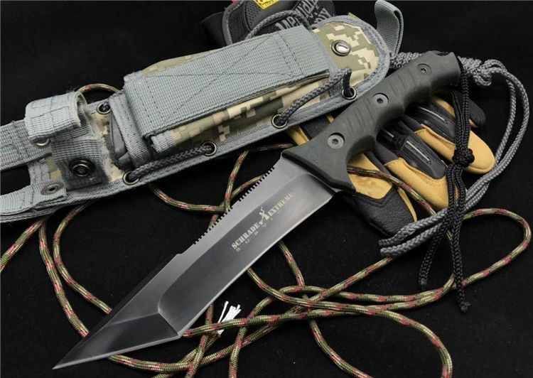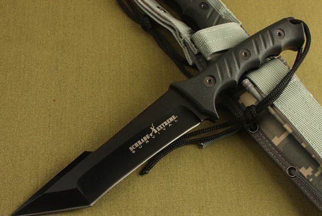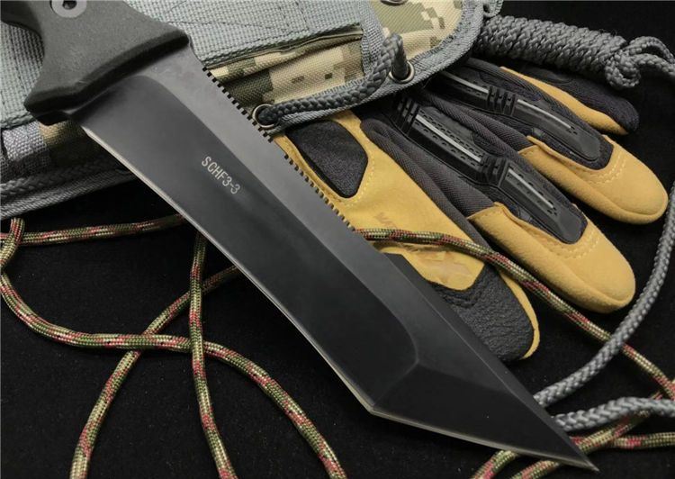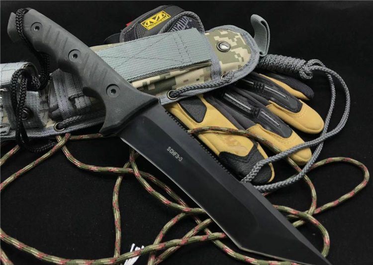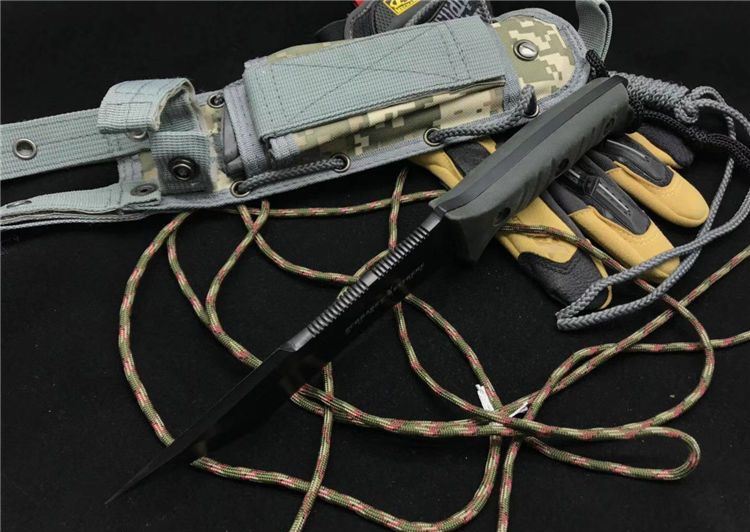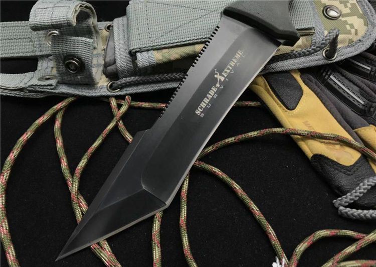 施拉德3号战术直刀 全 长:30cm 刃 长:15cm 柄 长:14cm 刃 厚:5.5mm 刃 材:5CR13 硬 度:57HRC 净 重:410g 总 重:700g(包括纸盒和刀鞘) 柄 材:工和橡胶 表 面:发黑钛 刀 鞘:CORDURA(科杜拉)