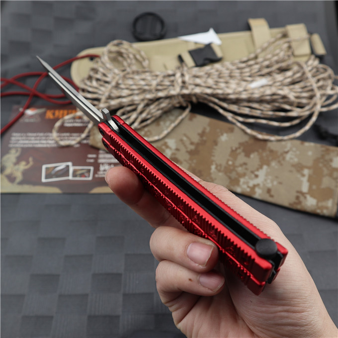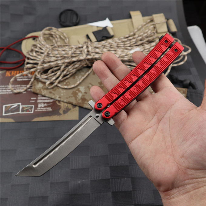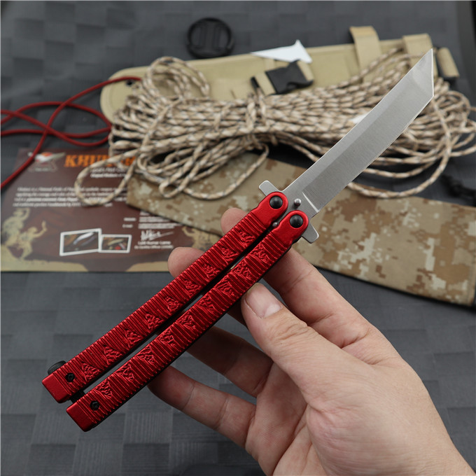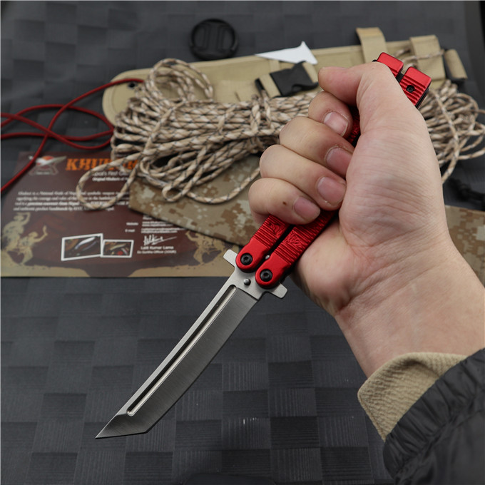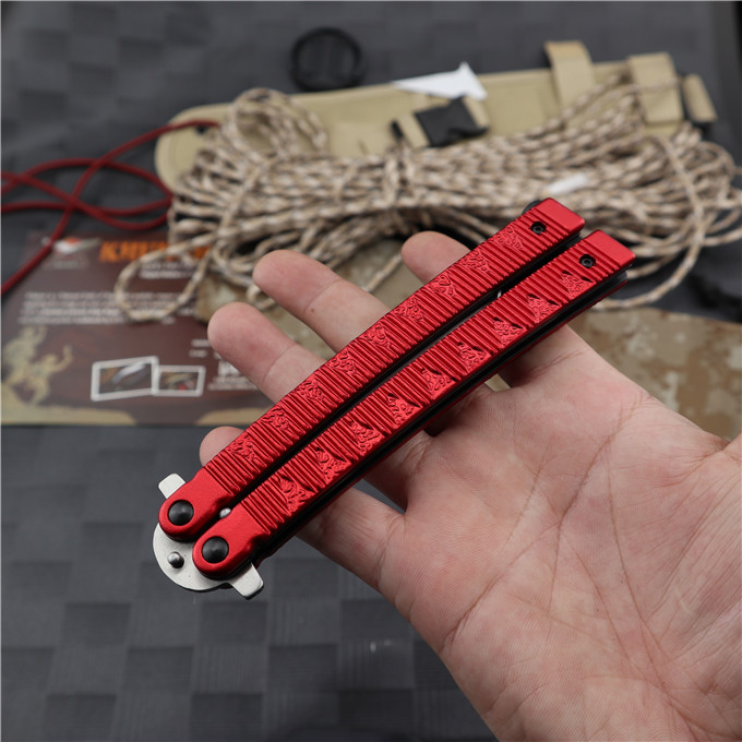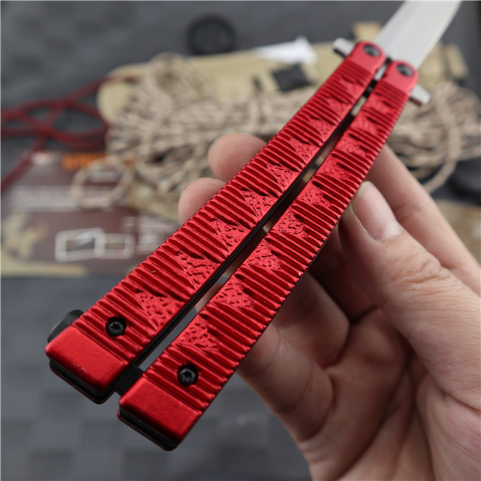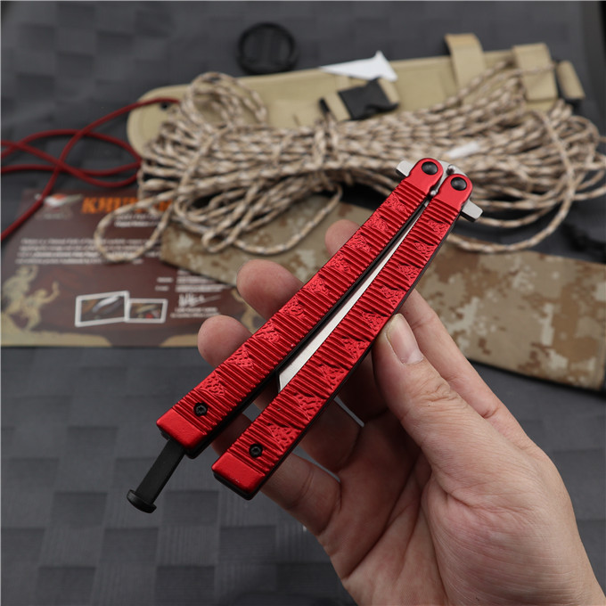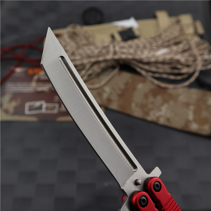 新款白刃武士甩刀 全长:24.5cm 刃长:10.6cm 刃宽:1.8cm(最宽处) 刃厚:2.7mm 刃材:5CR15MOV 硬度:57HRC 刀柄:铝柄 表面:镀钛 重量:155克(含包装)