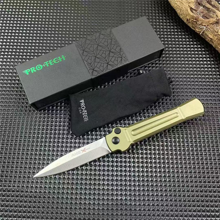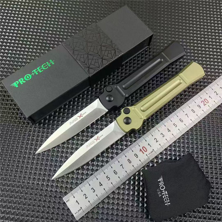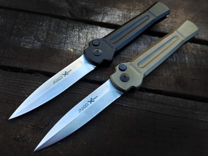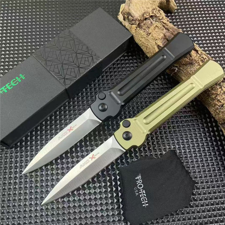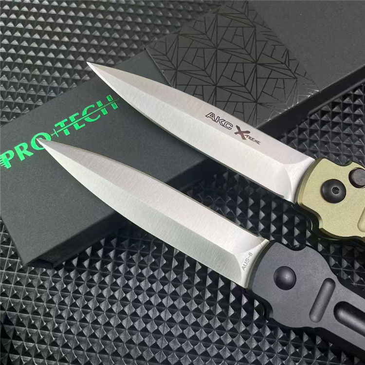 超技术AKC意大利黑手党侧开跳刀 品牌:AKC 名称:X-treme 全长:约216mm 刃材:AUS-8不锈钢深冷热处理表面钢本砂光 硬度:59-60HRC 刃厚:3.0mm 刃长:92mm 柄长:124mm 柄材及处理:航空铝合金,阳极氧化黑色和绿色两种颜色 重量:约93g