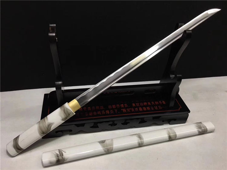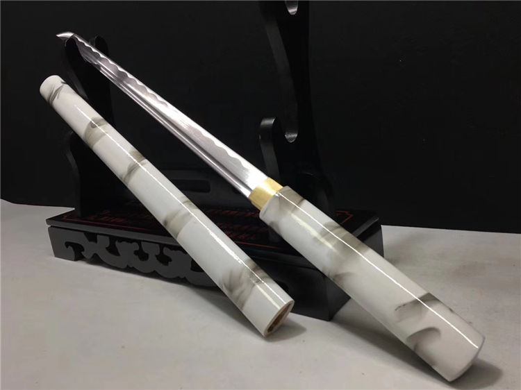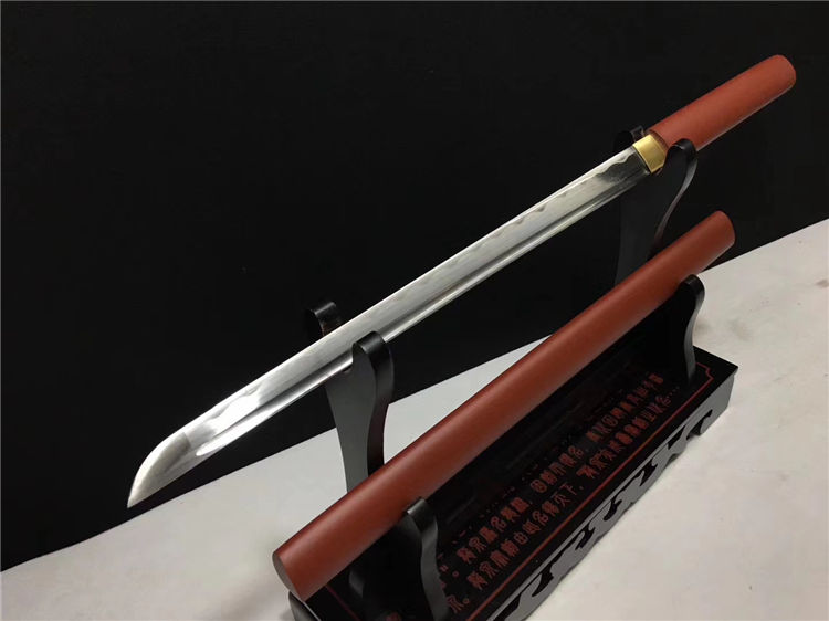 特价中款唐刀 全长:78cm 刃长:50cm 刃宽:3.2cm 厚:0.7cm 重:0.70kg 纯手工打造可削纸砍竹过水壶一体工艺