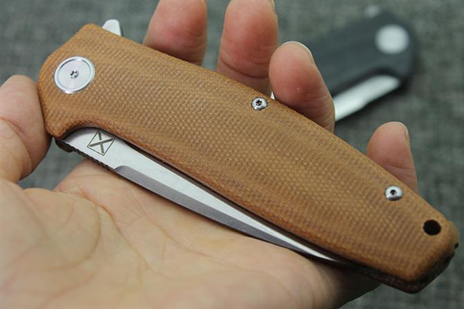 YX751折刀 刀片:14c28n 手柄:米卡塔+不锈钢 硬度:hrc59-61 总长度:223mm 叶片长度:95mm 叶片厚度:3.9mm 叶片宽度:30mm 刀片:缎面 启闭系统:滚珠轴承 包装:礼品盒 刀重:140g