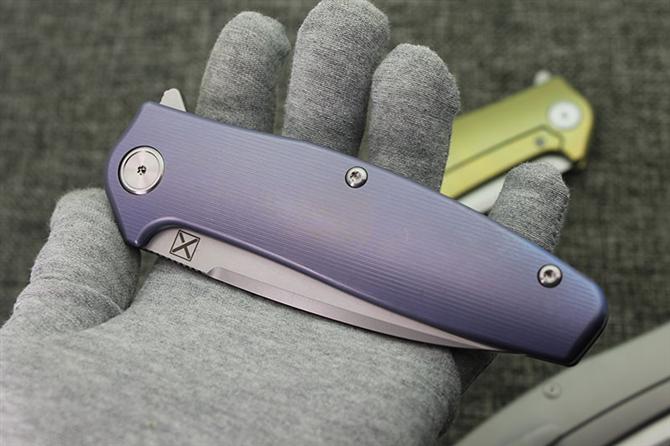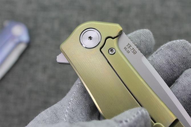 YX750钛柄折刀 叶片:VG10 手柄:钛合金TC4(喷砂),阳极氧化,成型工艺,减轻重量 硬度:HRC59-61 总长度:223mm 叶片长度:95mm 叶片厚度:3.9mm 叶片宽度:30mm 刀:沧桑洗石 启闭系统:双排陶瓷球 包装:礼品盒 刀重:150g 包装重量:212g