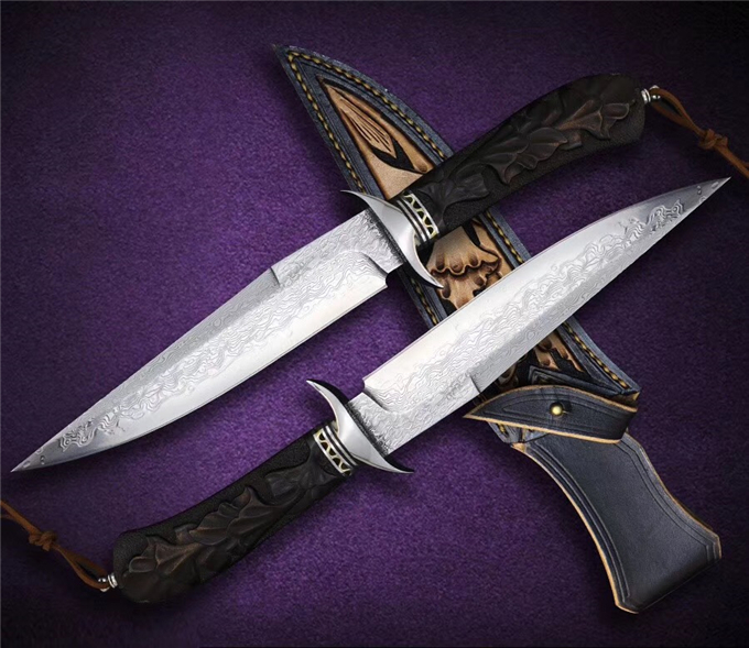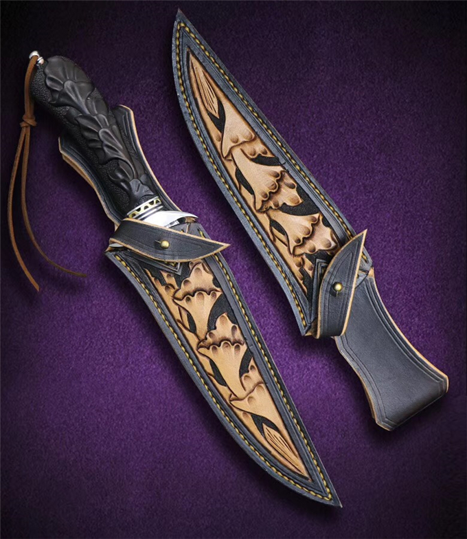 包装皮套:高级手工盒+意大利手工进口植鞣雕花复古刀套