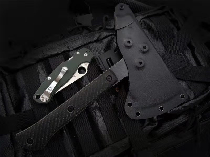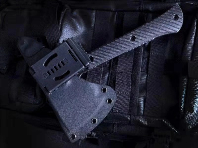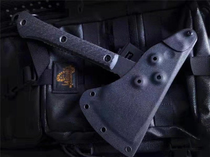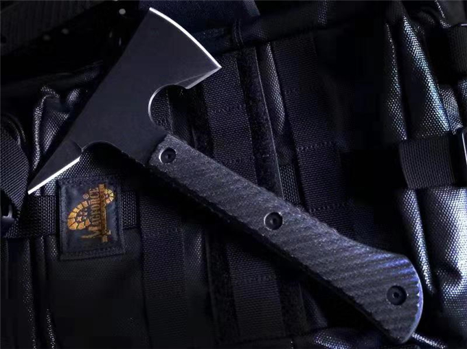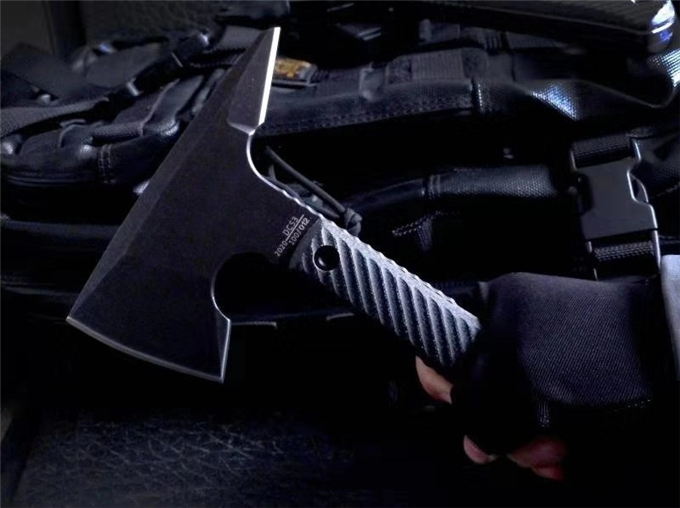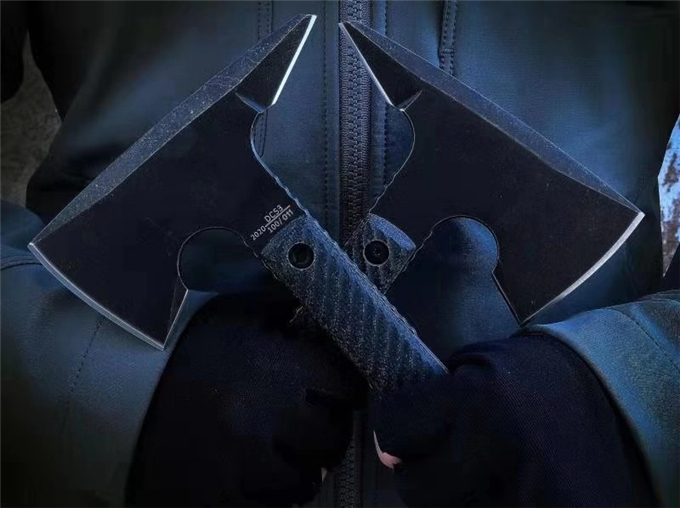 特种兵战斧 品牌:特种兵 全长:237mm 刃钢:DC53深冷热处理表面黑色石洗 硬度:58-60HRC 刃厚:6mm 刃长:独特三叉刃 主刃:67mm 柄长:约175mm 柄材及处理:三维加工亚麻柄 重量:476g 配战术K鞘