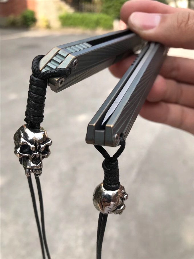 柄材:TC4钛合金与TC4钛+G10材质,配骷髅头吊坠