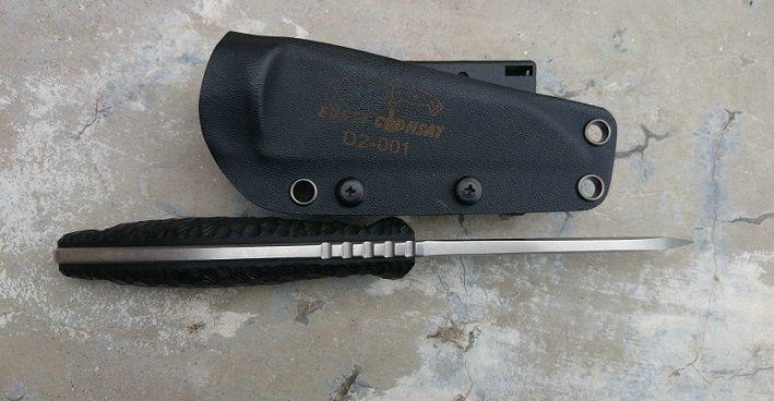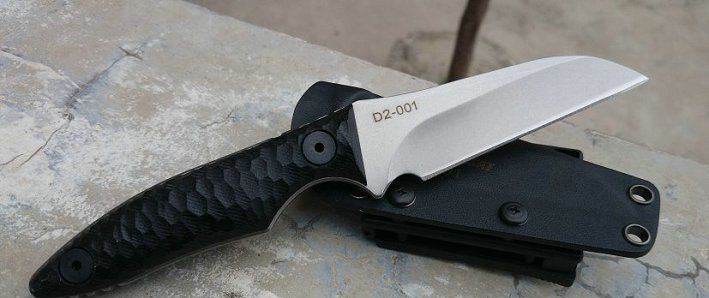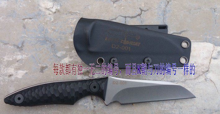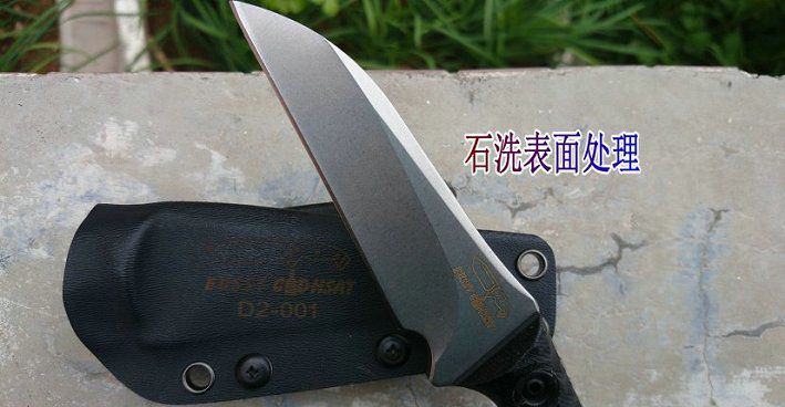 类型:小直刀 刃材:D2钢 手柄:黑色G10 表面处理:石洗 刀具全长 21.8CM 刃长 9.8CM 刃厚 0.52CM 硬度 60±1HRC 热处理:真空+深冷处理 重量:单刀(230克) 连刀鞘:300克 配件:加厚K鞘、高级礼品盒
